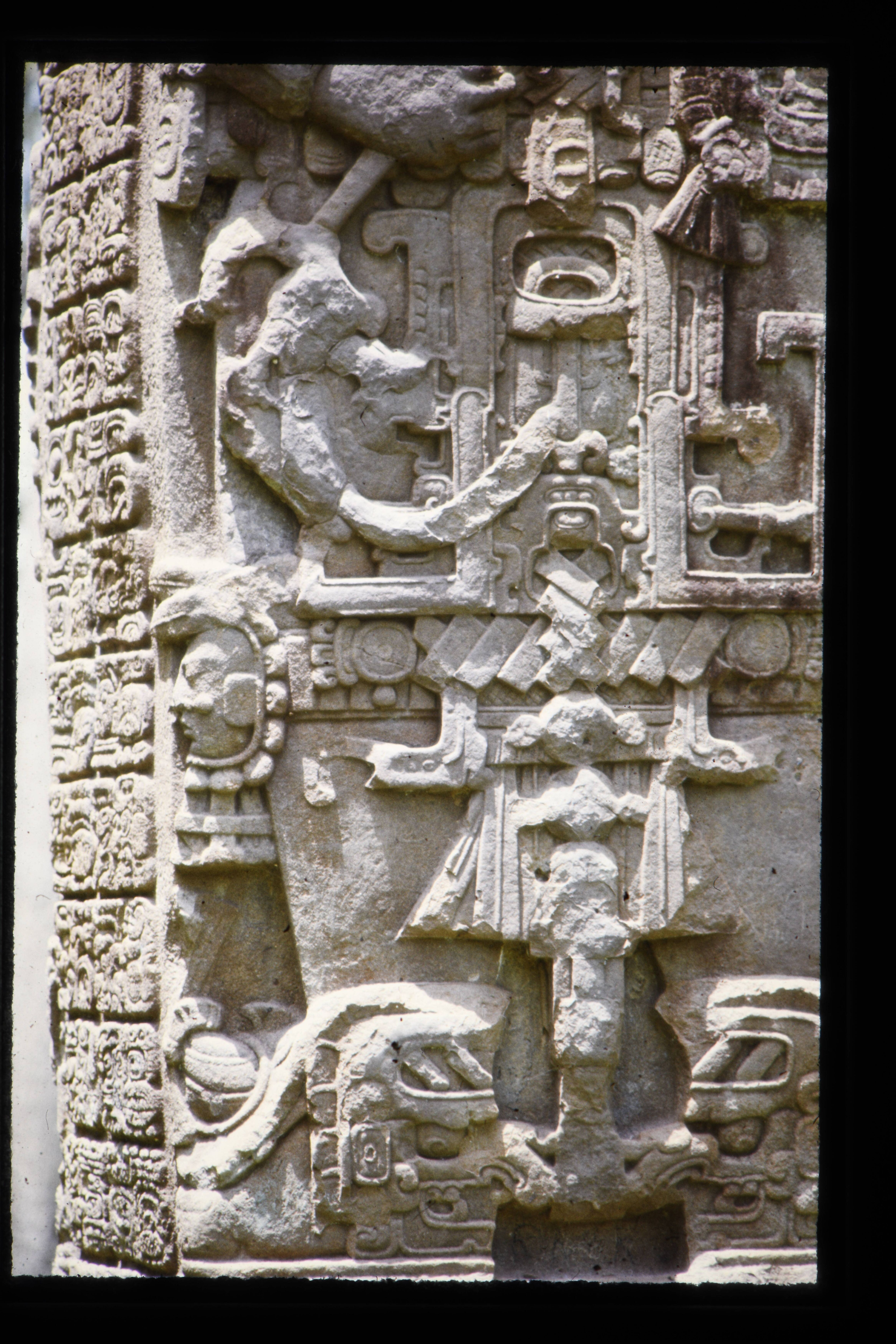 'Quiriguá, ruïnes van een oude Maya stad met zijn prachtige stenen gebeeldhouwde zuilen, tempels en grote stenen monumenten in de vorm van dieren.'