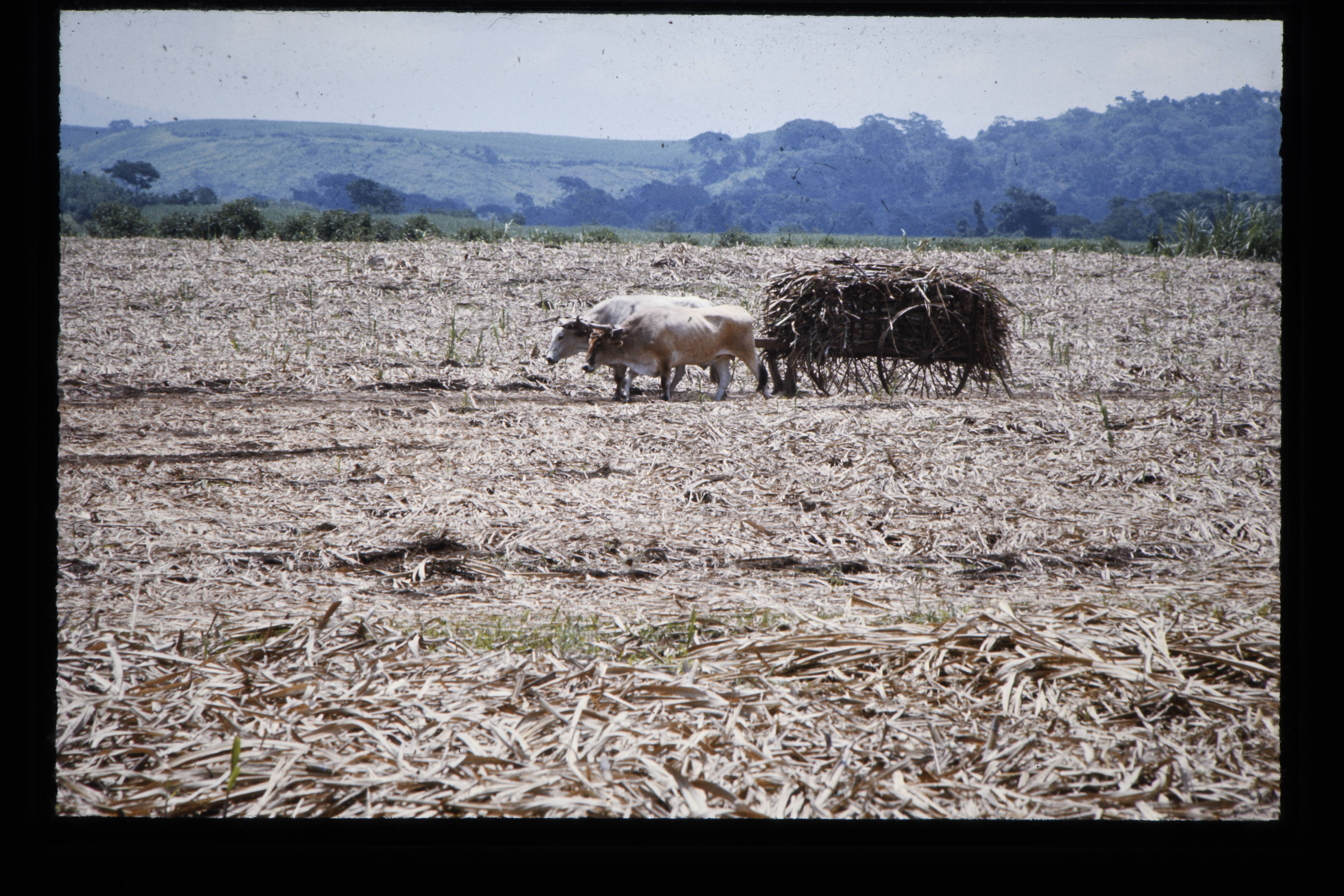 'Suikerrietplantages te El Baúl. De suikerriet wordt op de wagen geladen.'