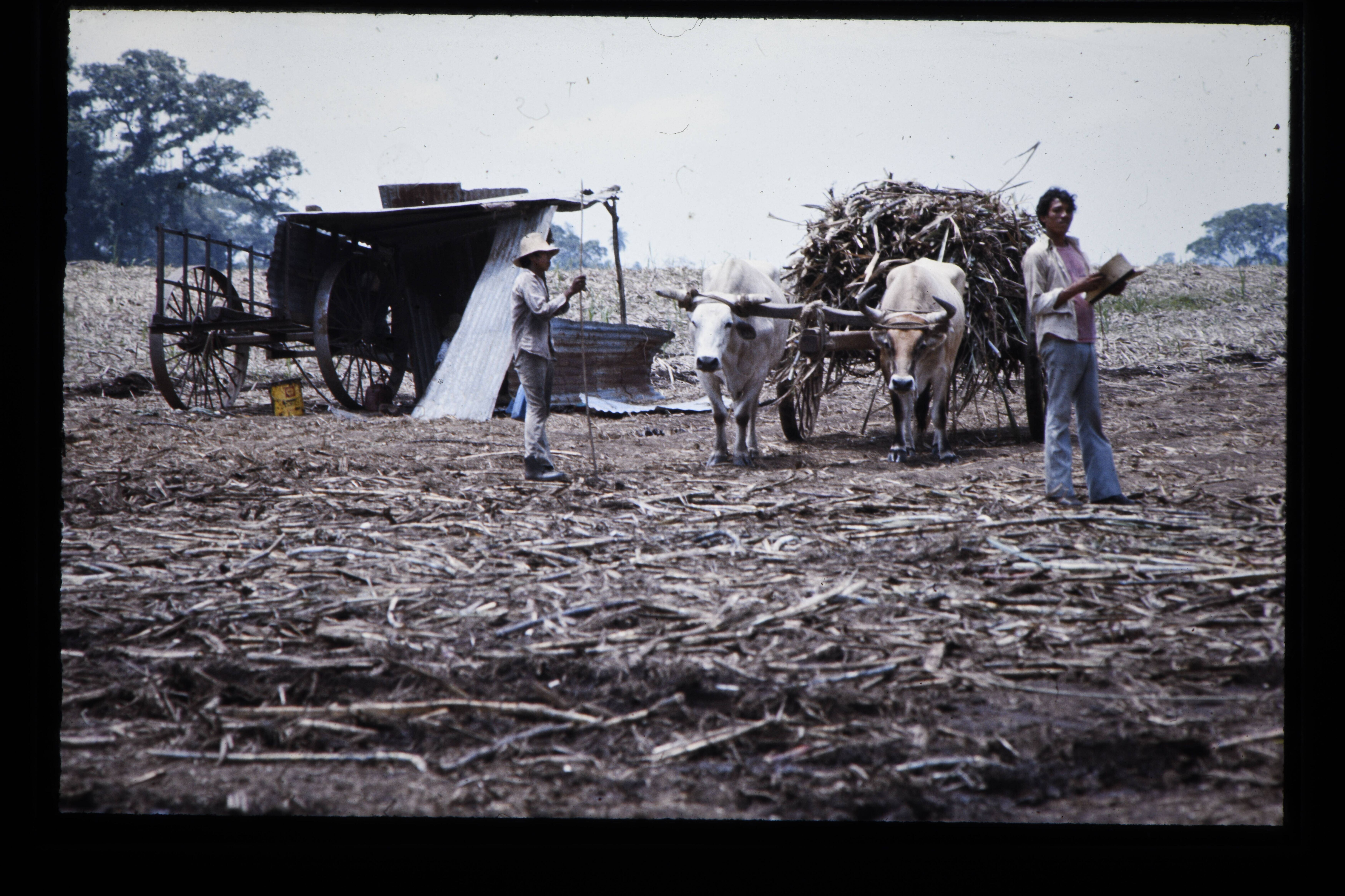 'Suikerrietplantages te El Baúl. De suikerriet wordt op de wagen geladen.'