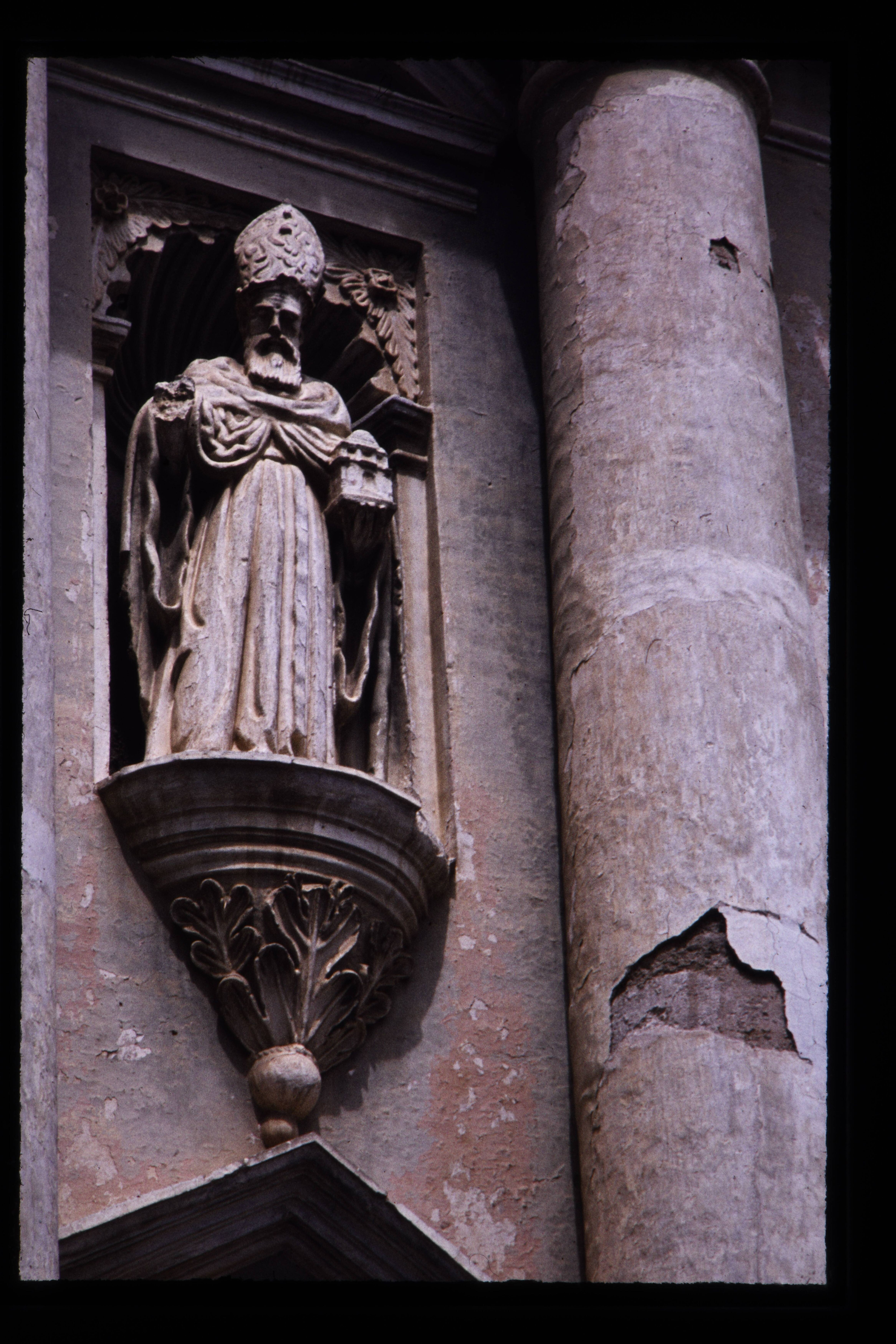 'Close-up beeld van de kathedraal te Antigua, daterend uit 1669. 0ok hier heeft de aardbeving van februari 1976 zijn sporen achtergelaten.'