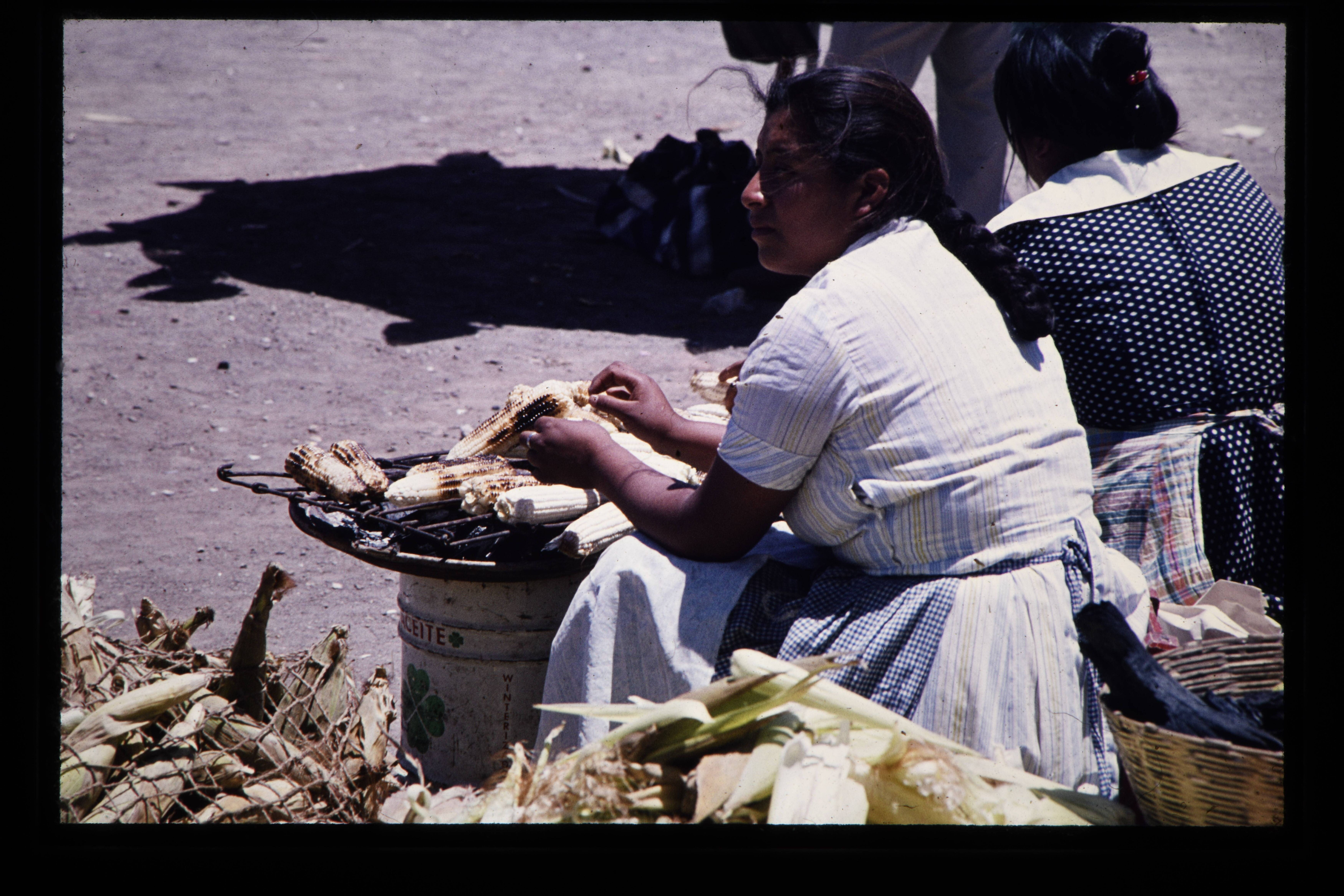 'De verkoop van geroosterde maïskolven op de markt te Antigua.'