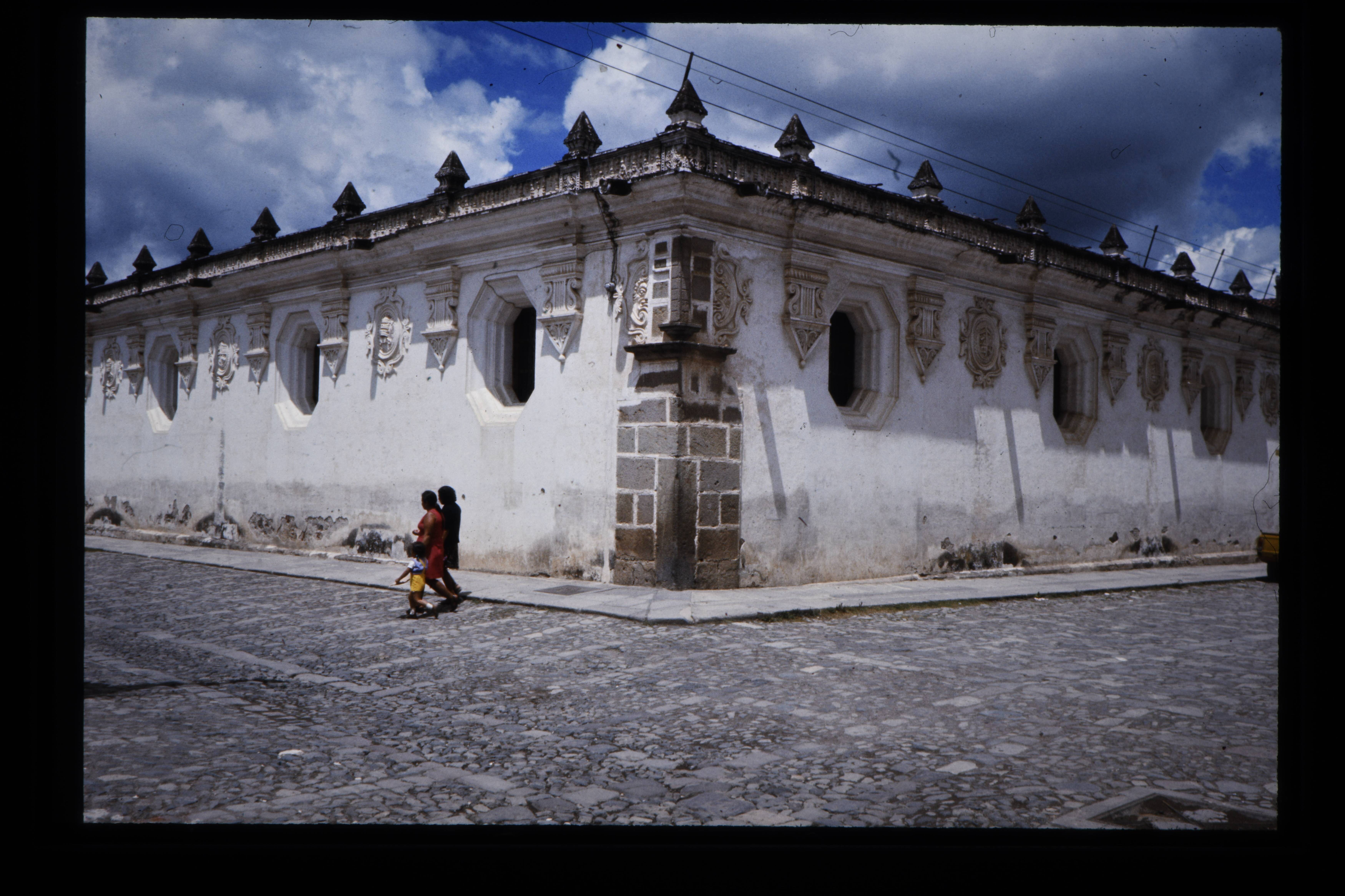'De oude universiteit van San Carlos Borromeo, gebouwd in 1675 te Antigua.'
