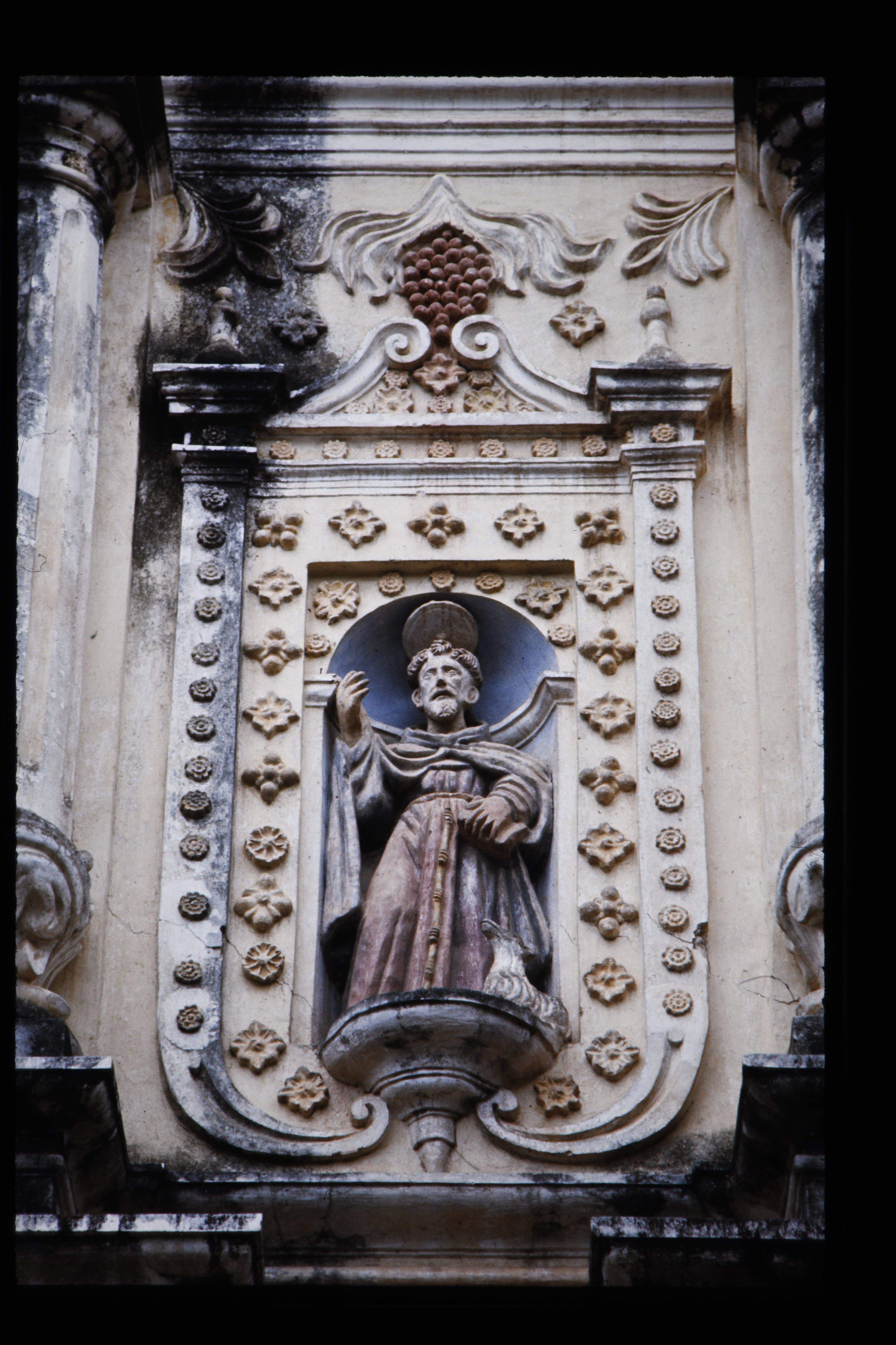 'Heiligen beeld in een nis. Vuitenkant van de iglesia Belén.'