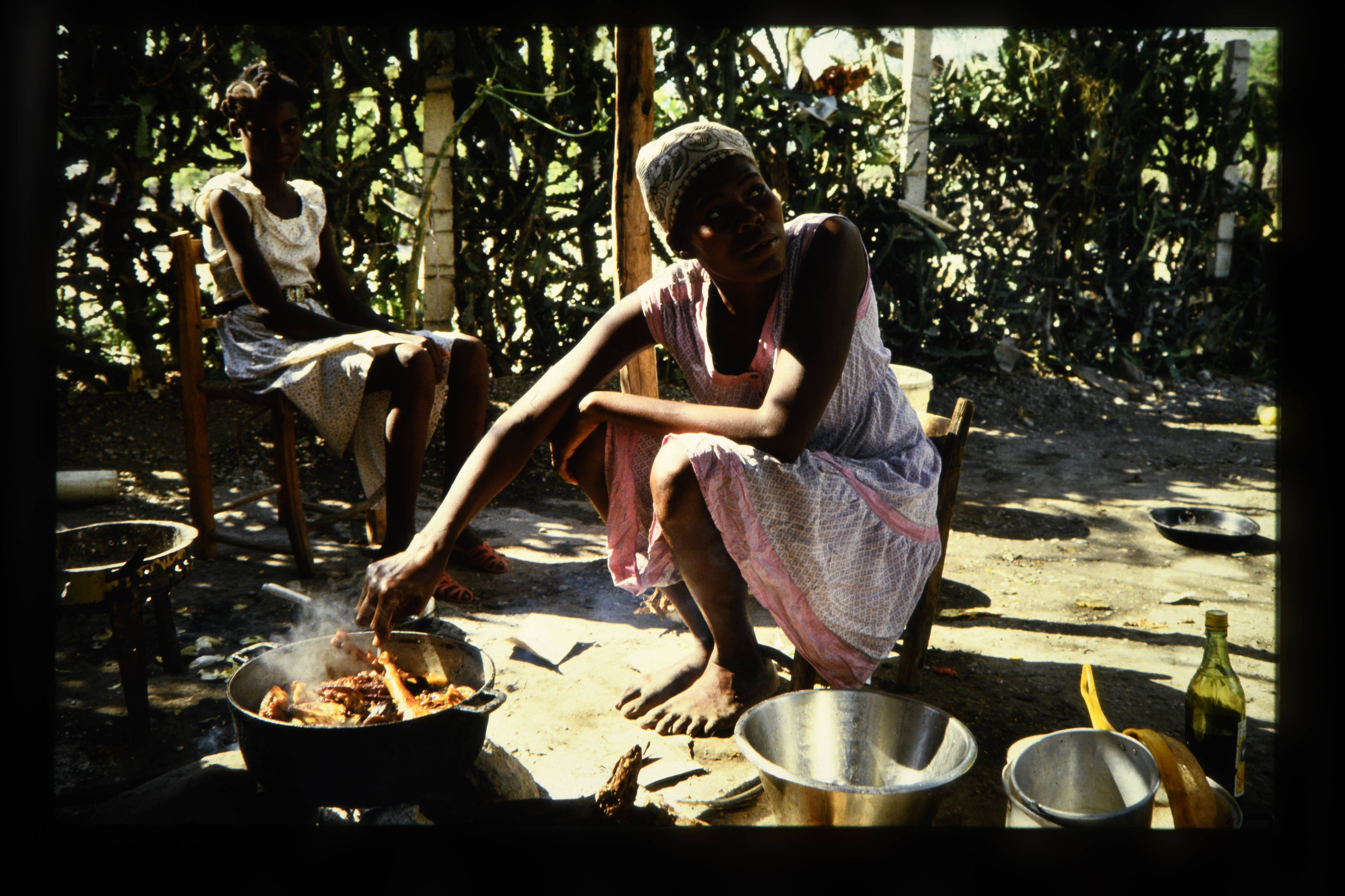'Vrouw bereidt een maaltijd. Anse-à-Pitre.'