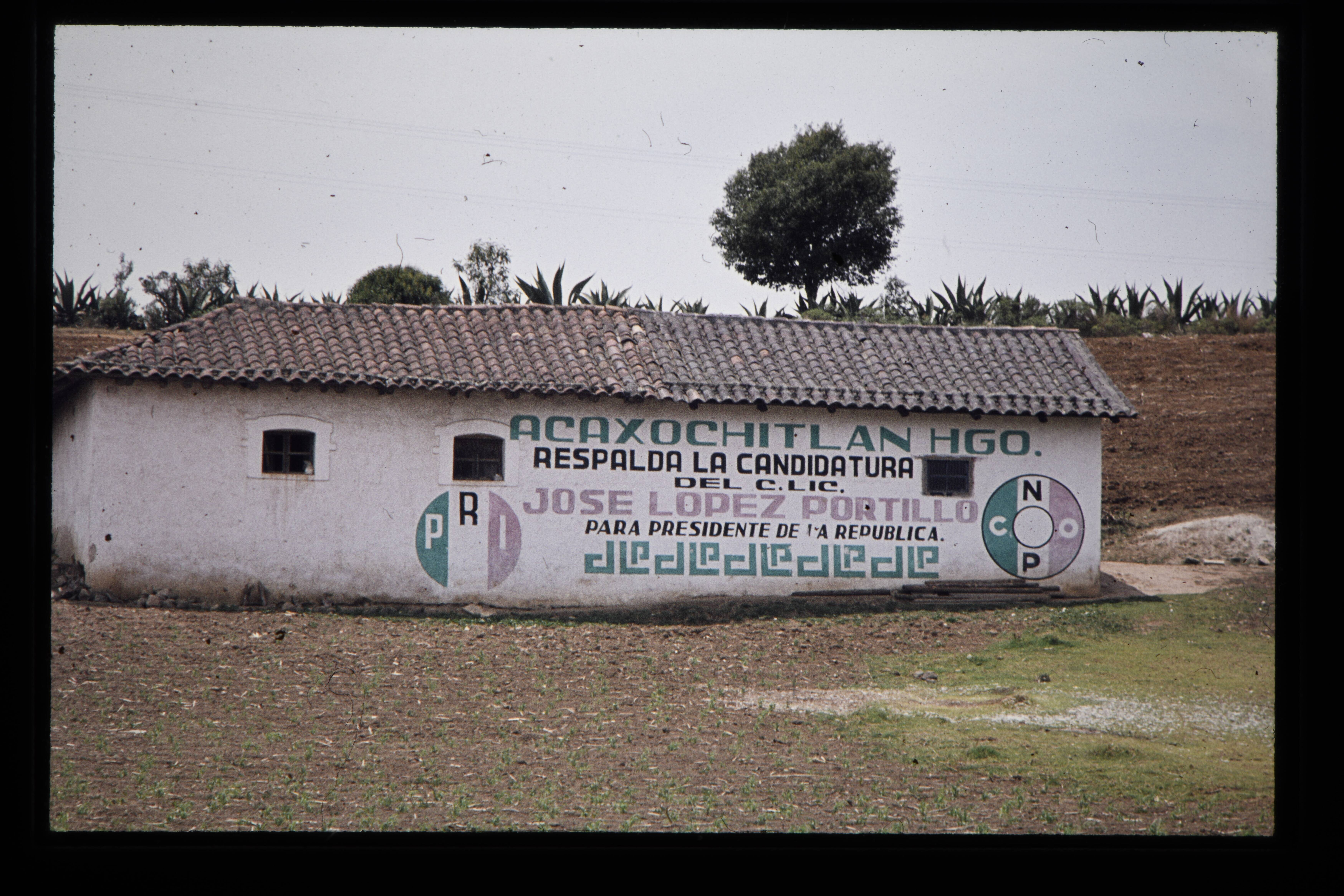 'Reclame op schuur in de buurt van de stad Pachuca.'
