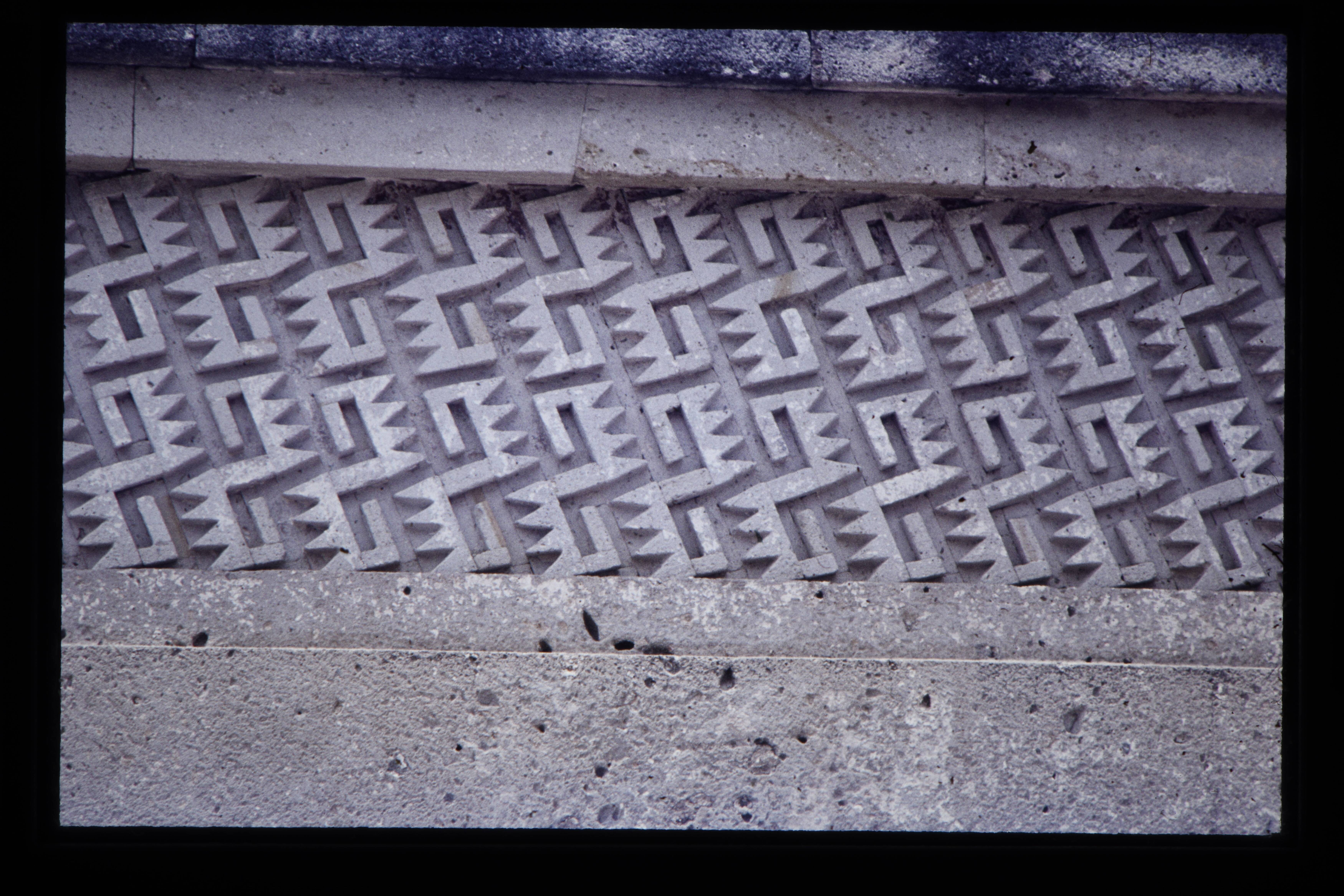 'De ruïnes van Mitla. Van oudsher godsdienstig centrum en dodenstad van de Zapoteken. Later veroverd door de Mixteken. Uit die periode stammen de verschillende tempels, paleizen en 2 pyramides. Provincie Oaxaca. '