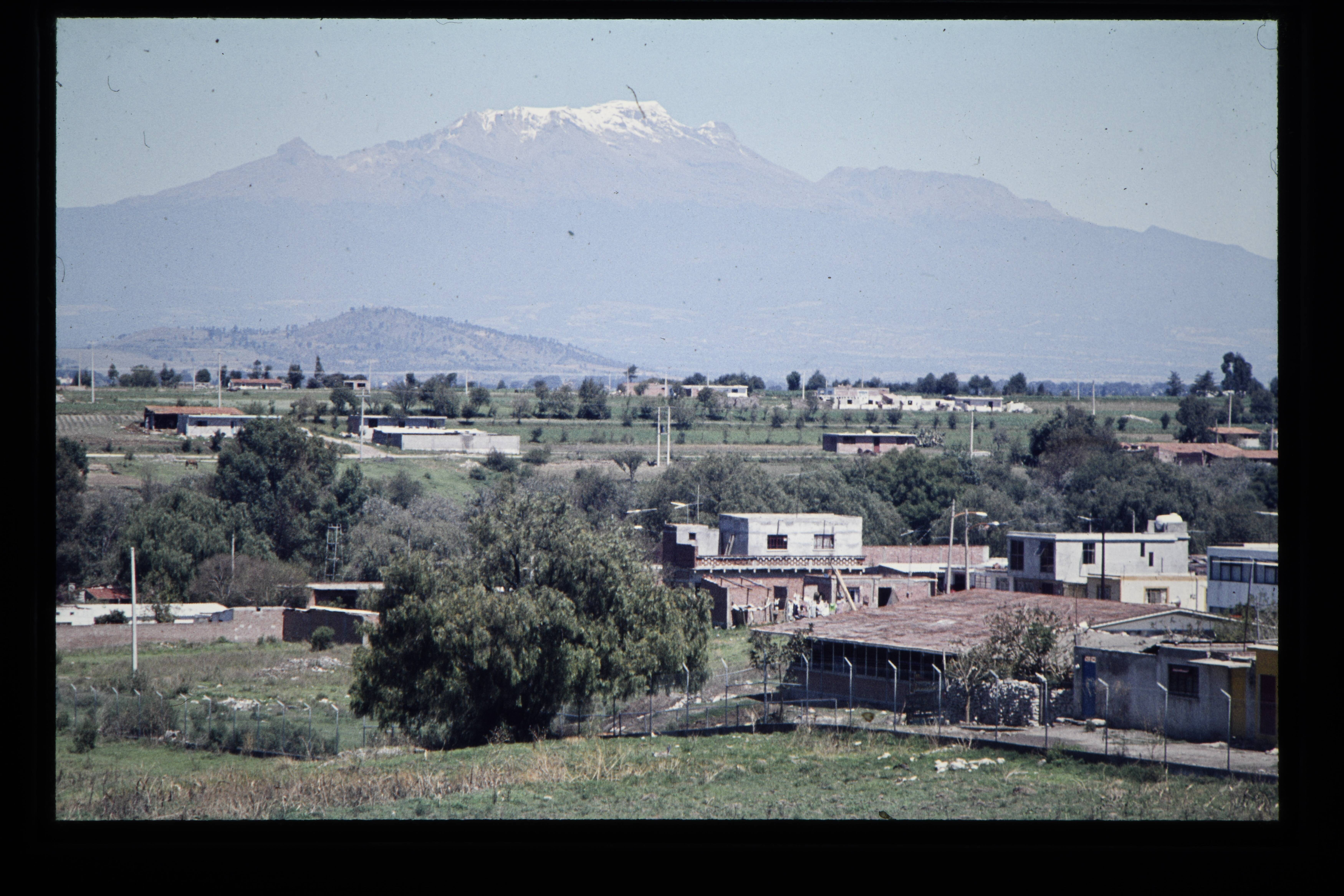 'Gezicht op de berg (vulkaan) Iztaccíhuatl.'
