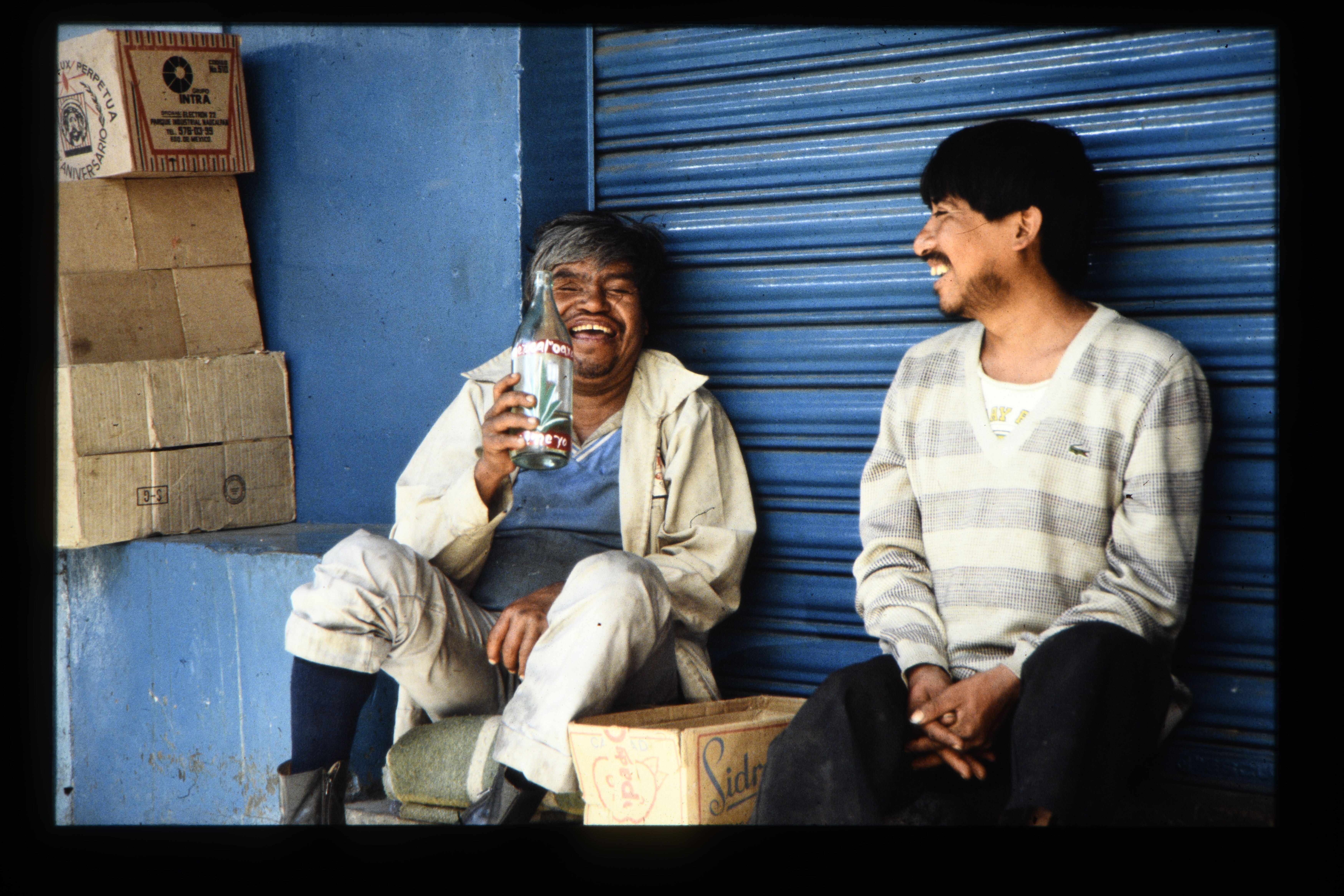 'Twee dronkaards in Oaxaca voor een winkel.'