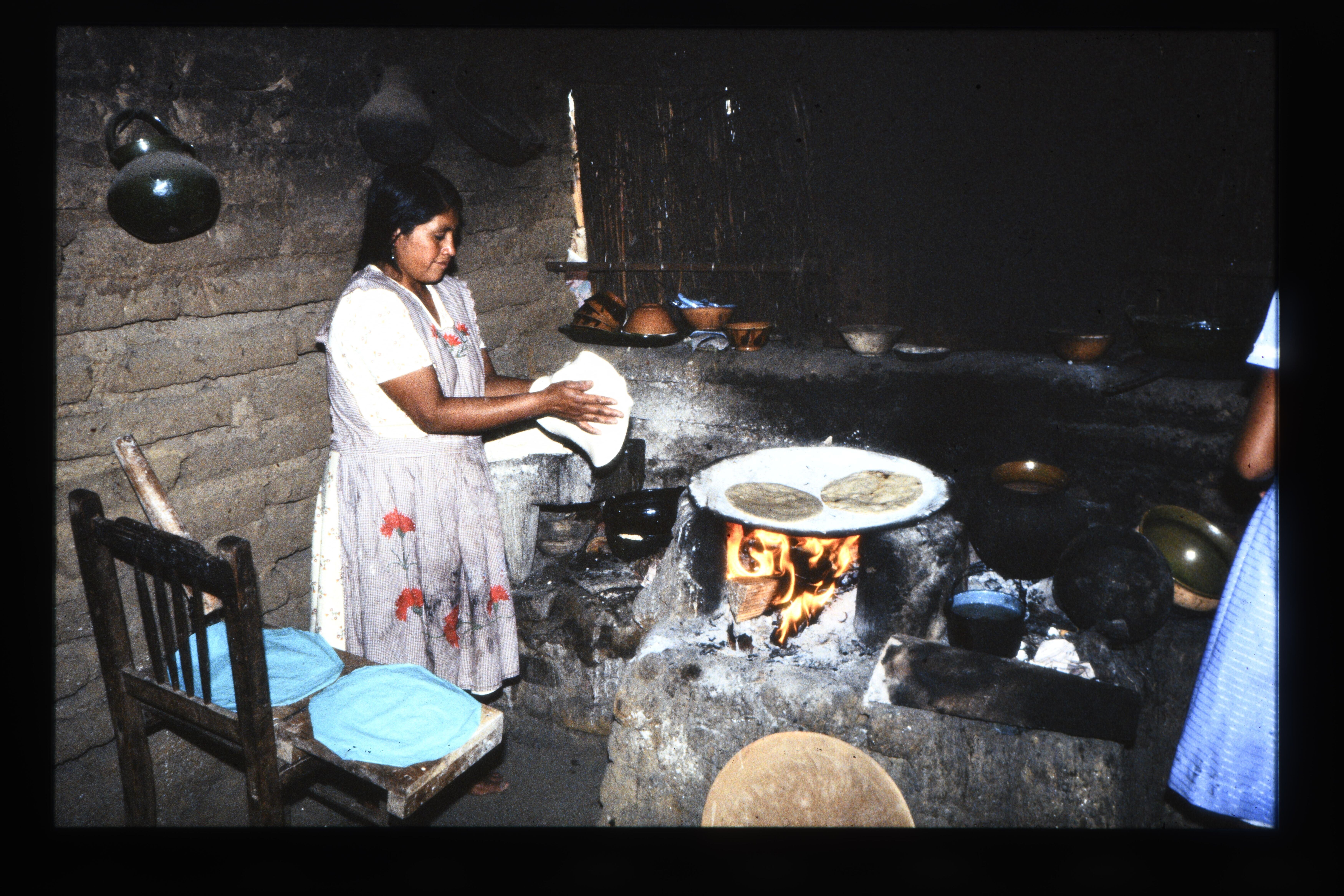 'Comadre Tomasa maakt tortilla's. Santa María Atzompa (Oaxaca).'