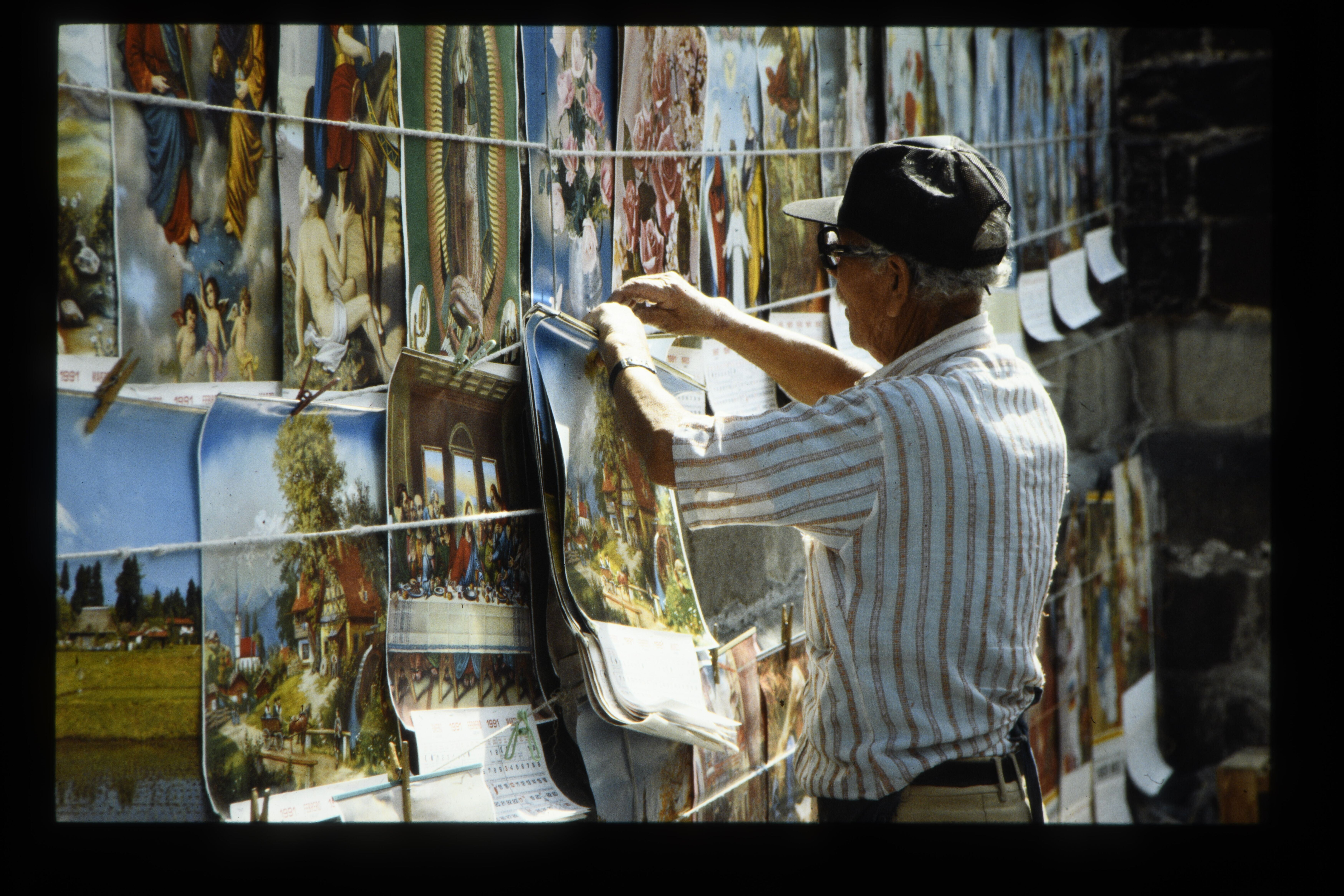 'Man verkoopt religeuze prenten. Mexico-Stad. '