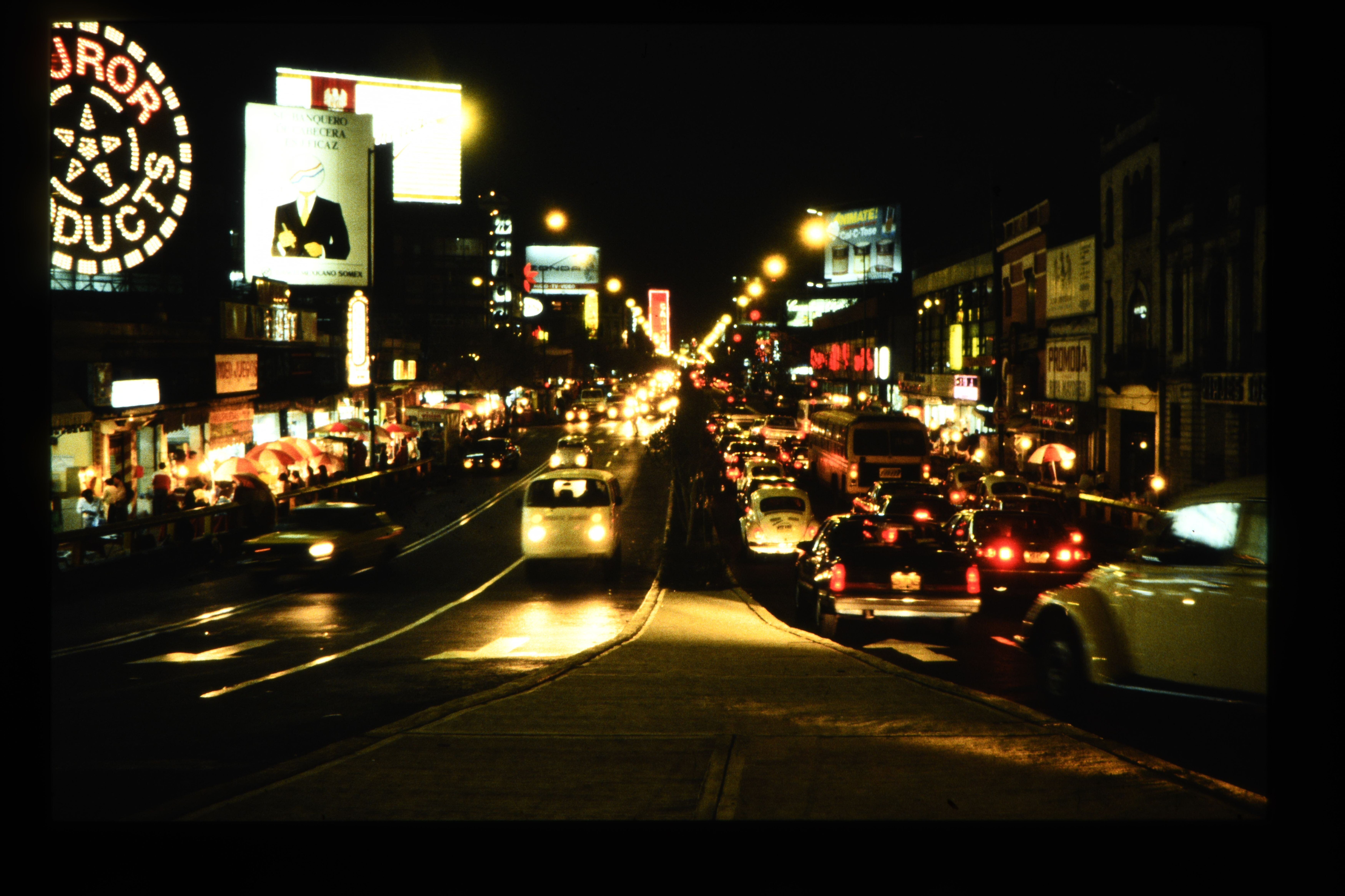 'Neonreclame langs Avenida de los Insurgentes. Mexico-Stad. '
