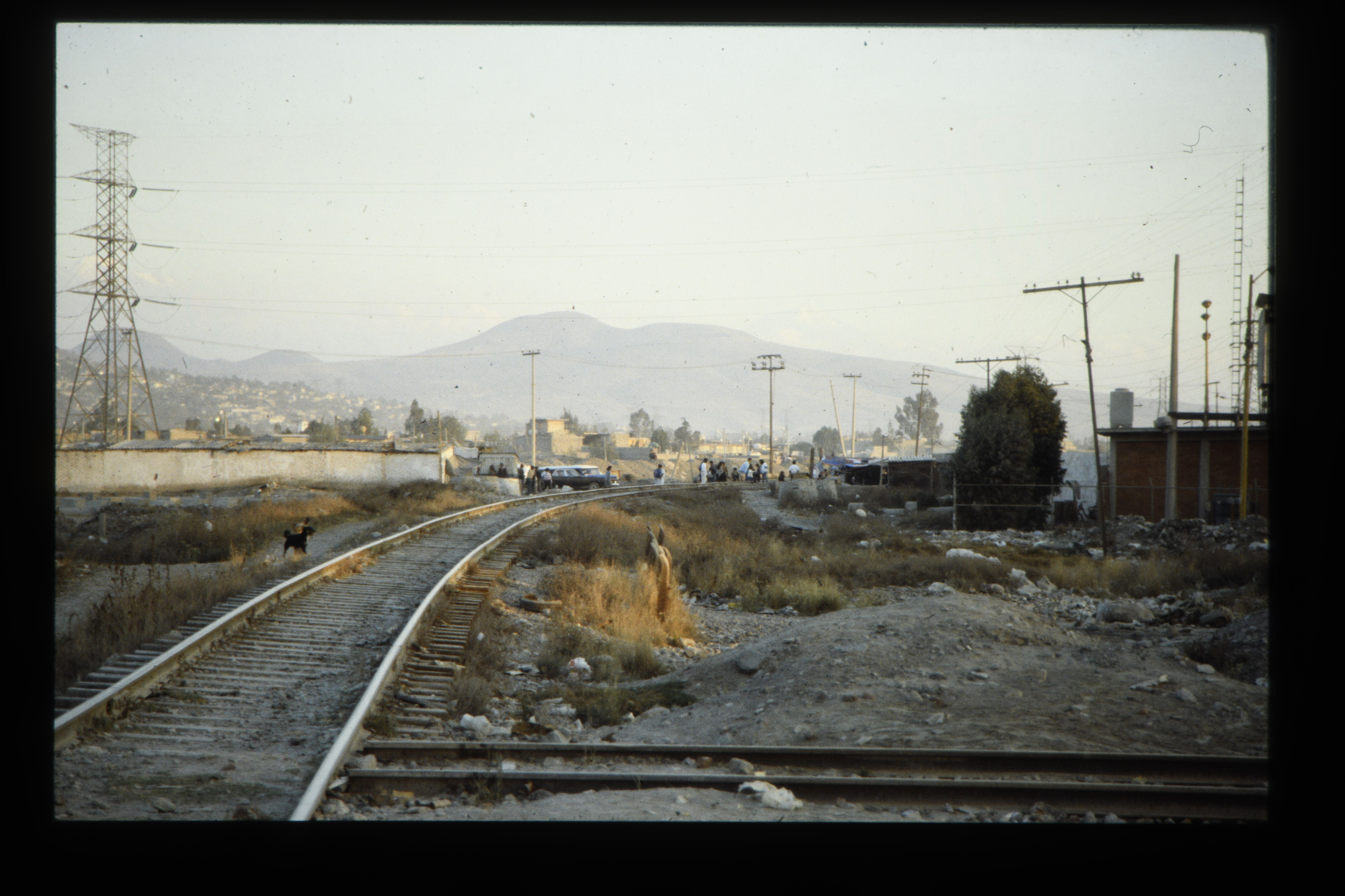 'Spoorwegovergang in Neza (Ciudad Nezahualcóyotl). Mexico-Stad. '