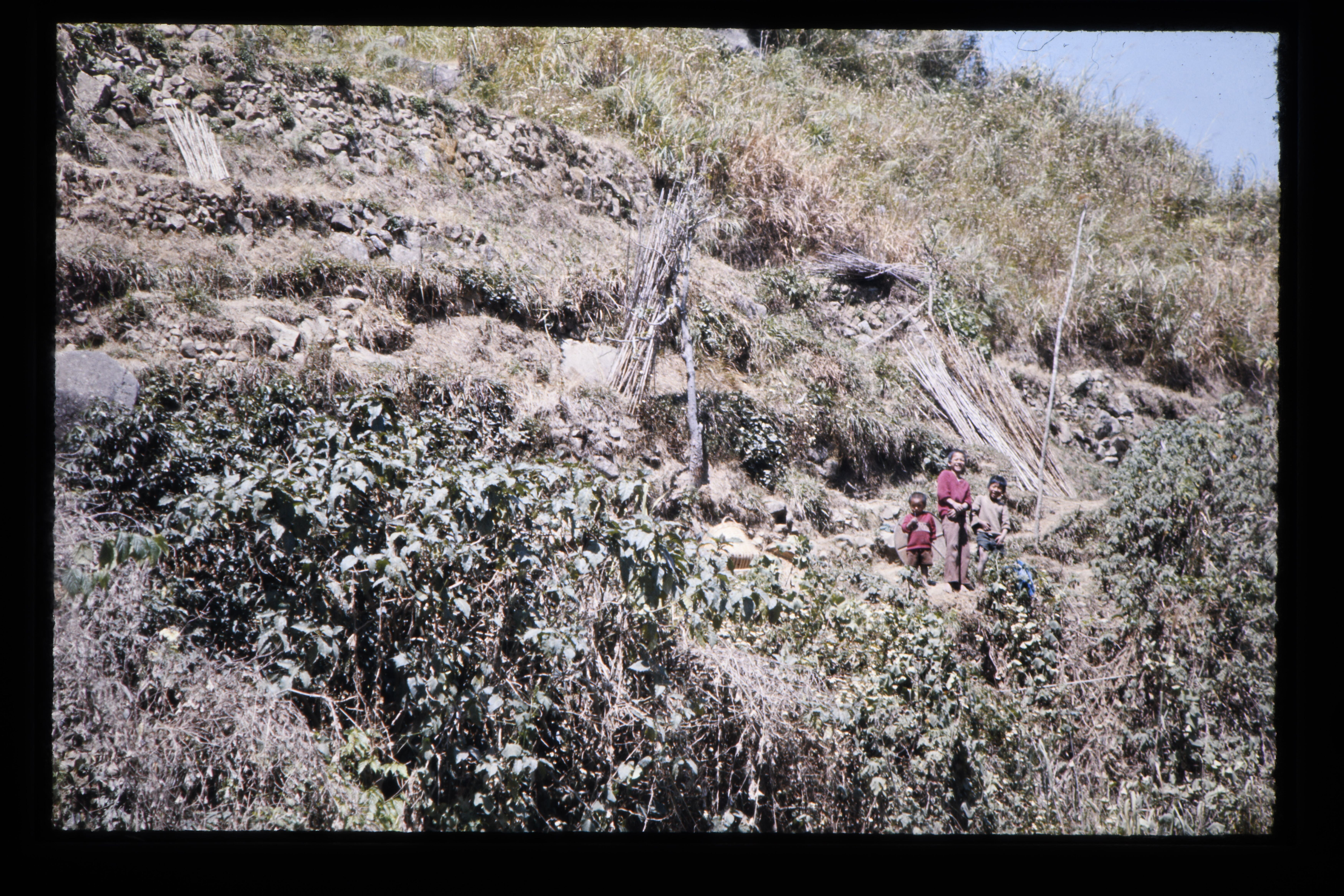 'Berglandschap, Benguet provincie, op de voorgrond Igorot kinderen'