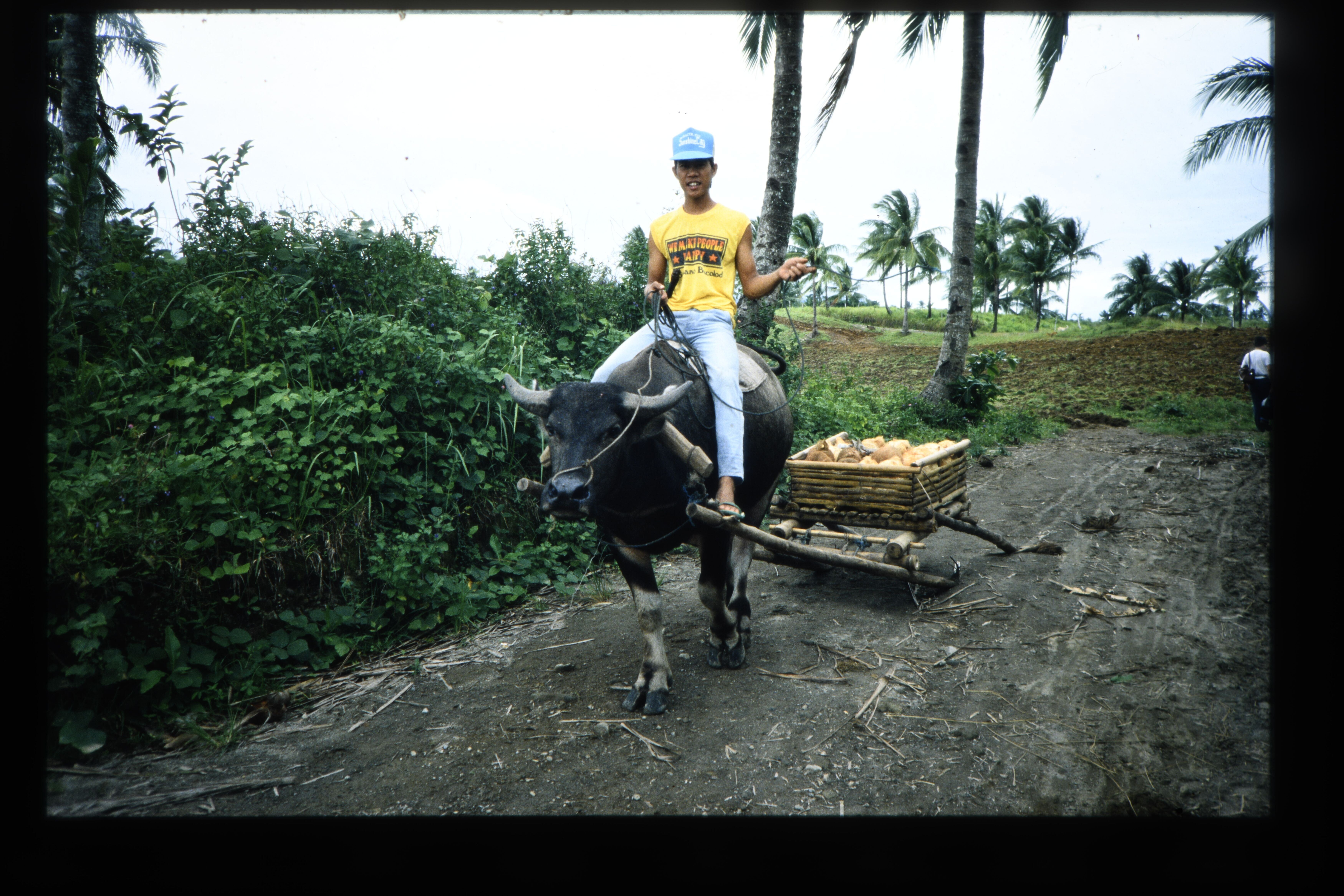 'Vervoer per kar met een karbauw ervoor Deze kar heeft geen wielen'