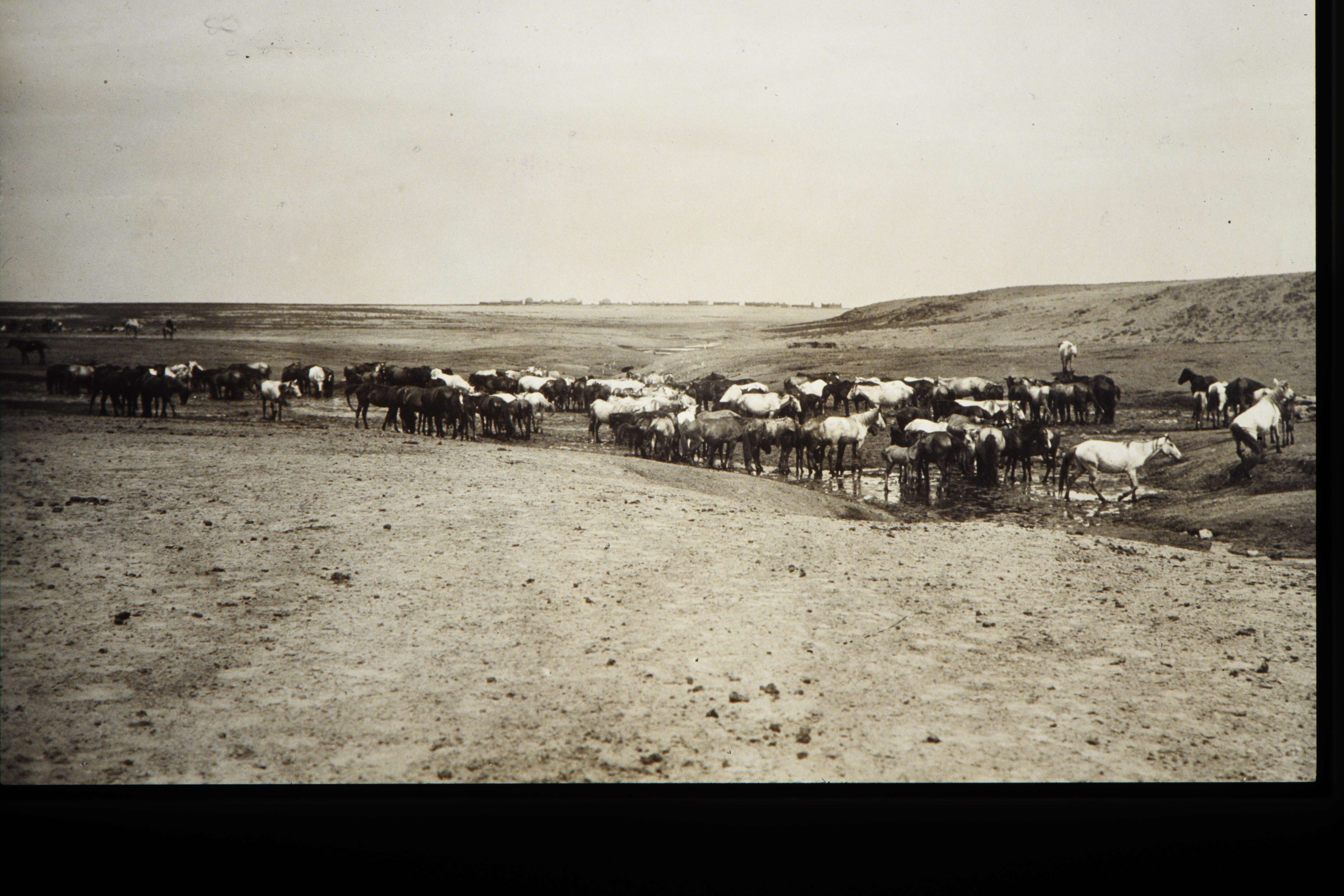 Onderdeel van het 3-scherms diaprogramma van de tentoonstelling 'Nomaden' in het Tropenmuseum