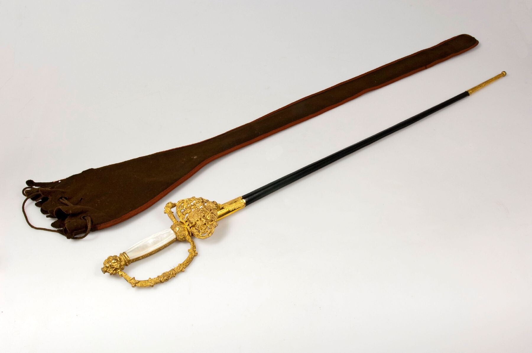 Staatsiedegen in een schede van leer, onderdeel van een kostuum