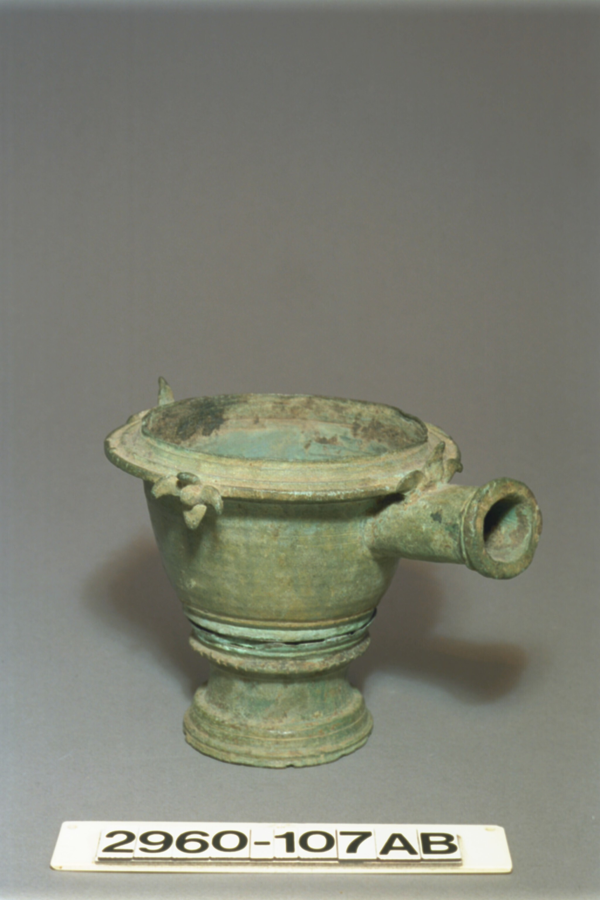 Indo-Javaanse wierookbrander (a) met (los voetstuk b) brons