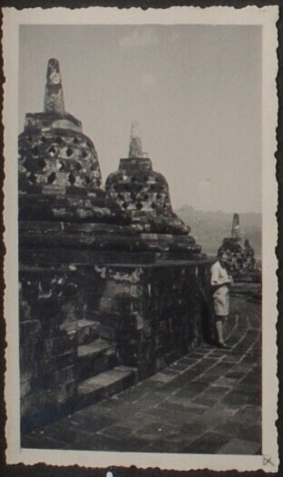 Europese man naast stoepa's op de Boeroeboeboer