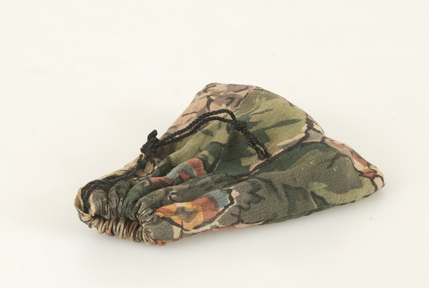 Zakje van bedrukt katoen, onderdeel van bikkelspel
