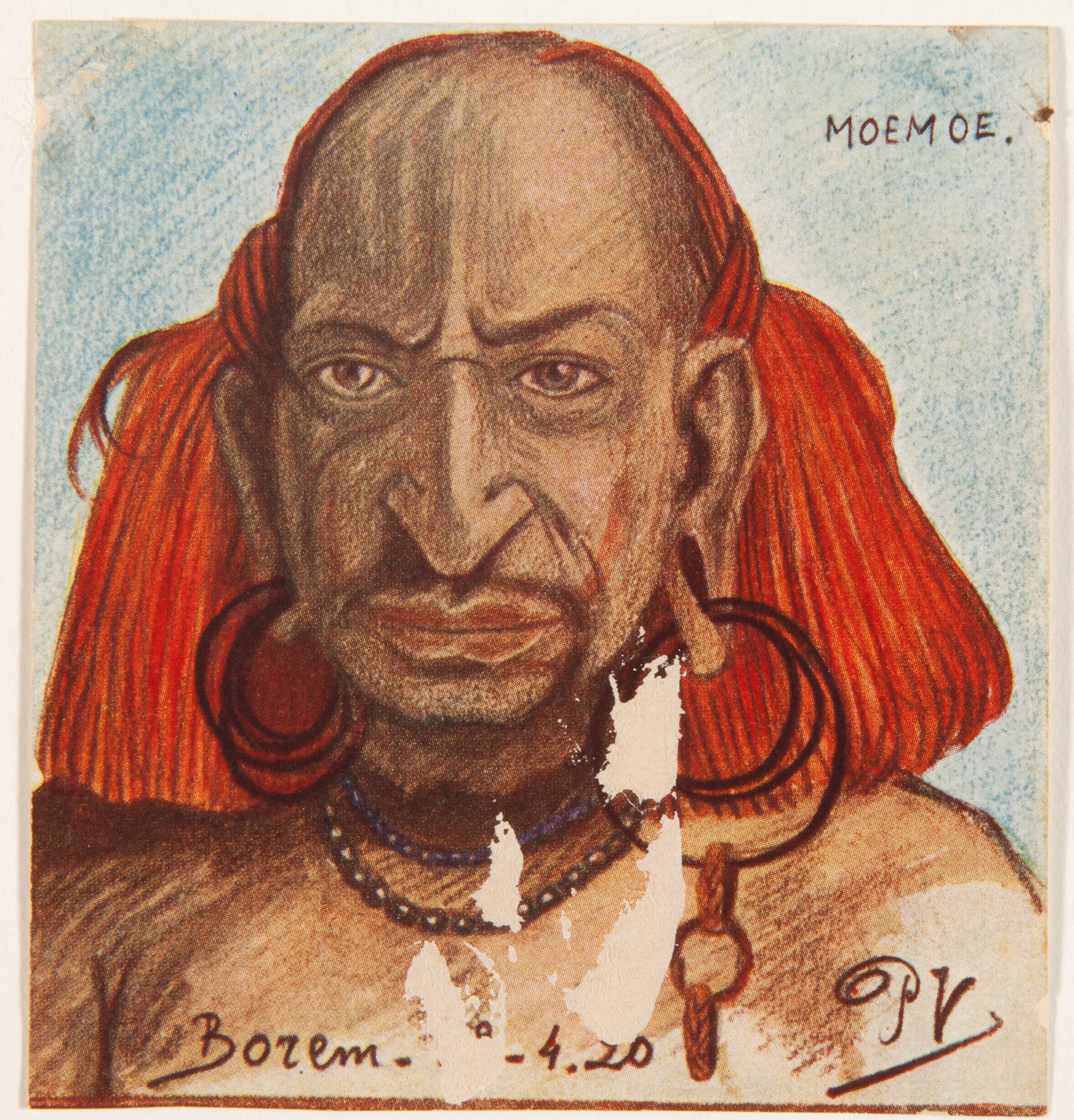 Reproductie van een tekening door Pater P. Vertenten van Moemoe, een Marind man.