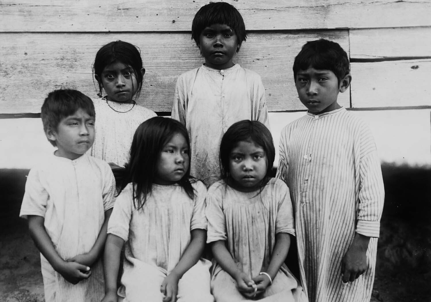 Portret van Warau en Lokono kinderen voor de school in Oreala Corantijn