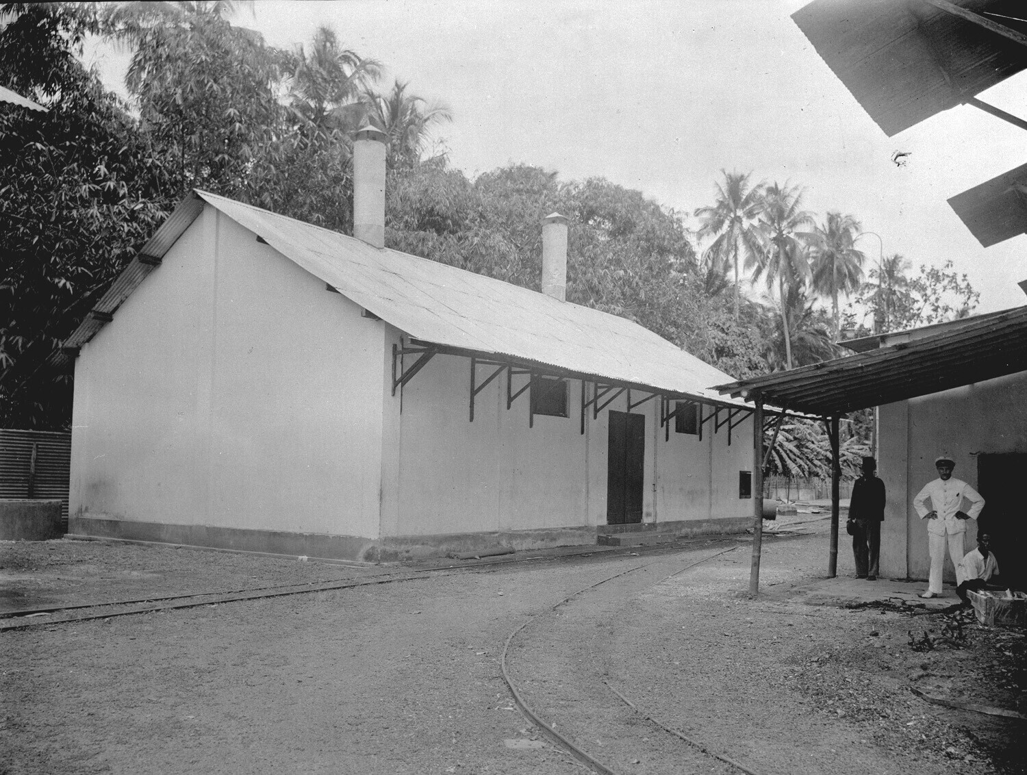 Drooghuis van de Mexolie vestiging te Tjilatjap op Midden-Java.