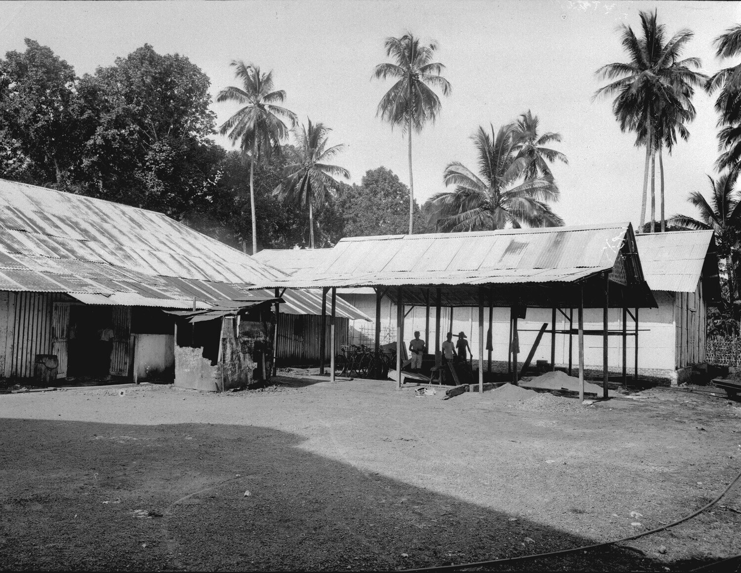 Kantoor met opslagplaats voor blikken van de Mexoliefabriek te Tjilatjap, Midden - Java.