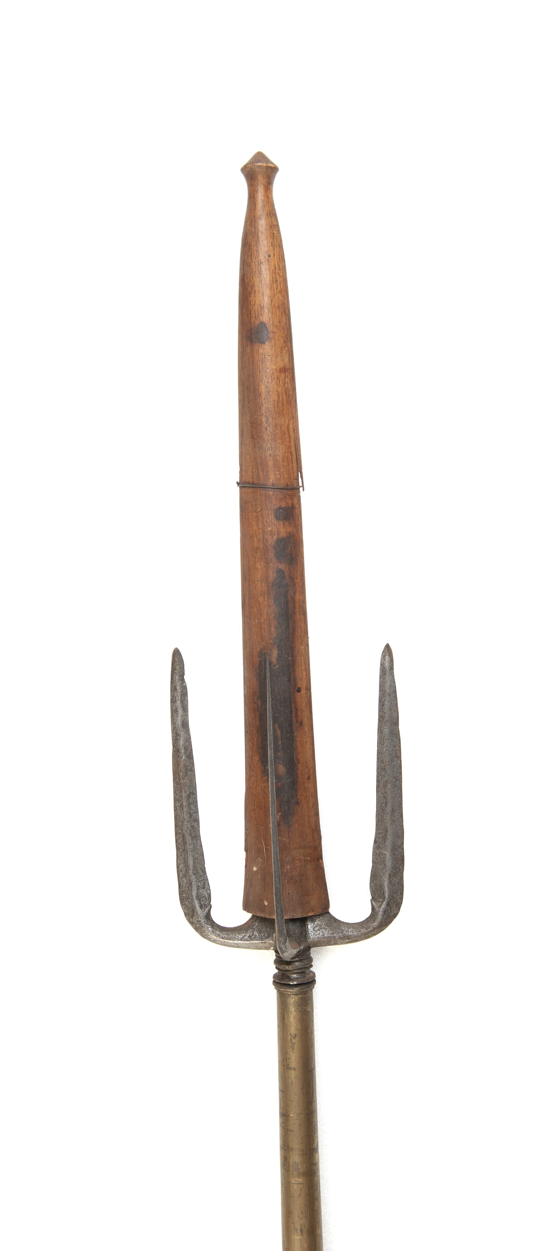 Lans, voorzien van ijzeren punt met vijf spitsen en gepolijste houten schede