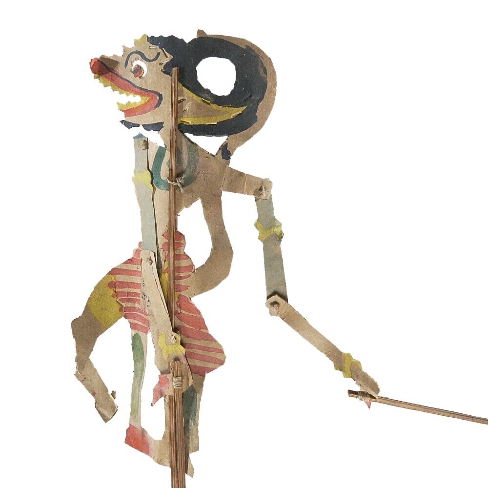 Gekleurde papieren wajangpop, een aap, behorende bij een set van 17 poppen