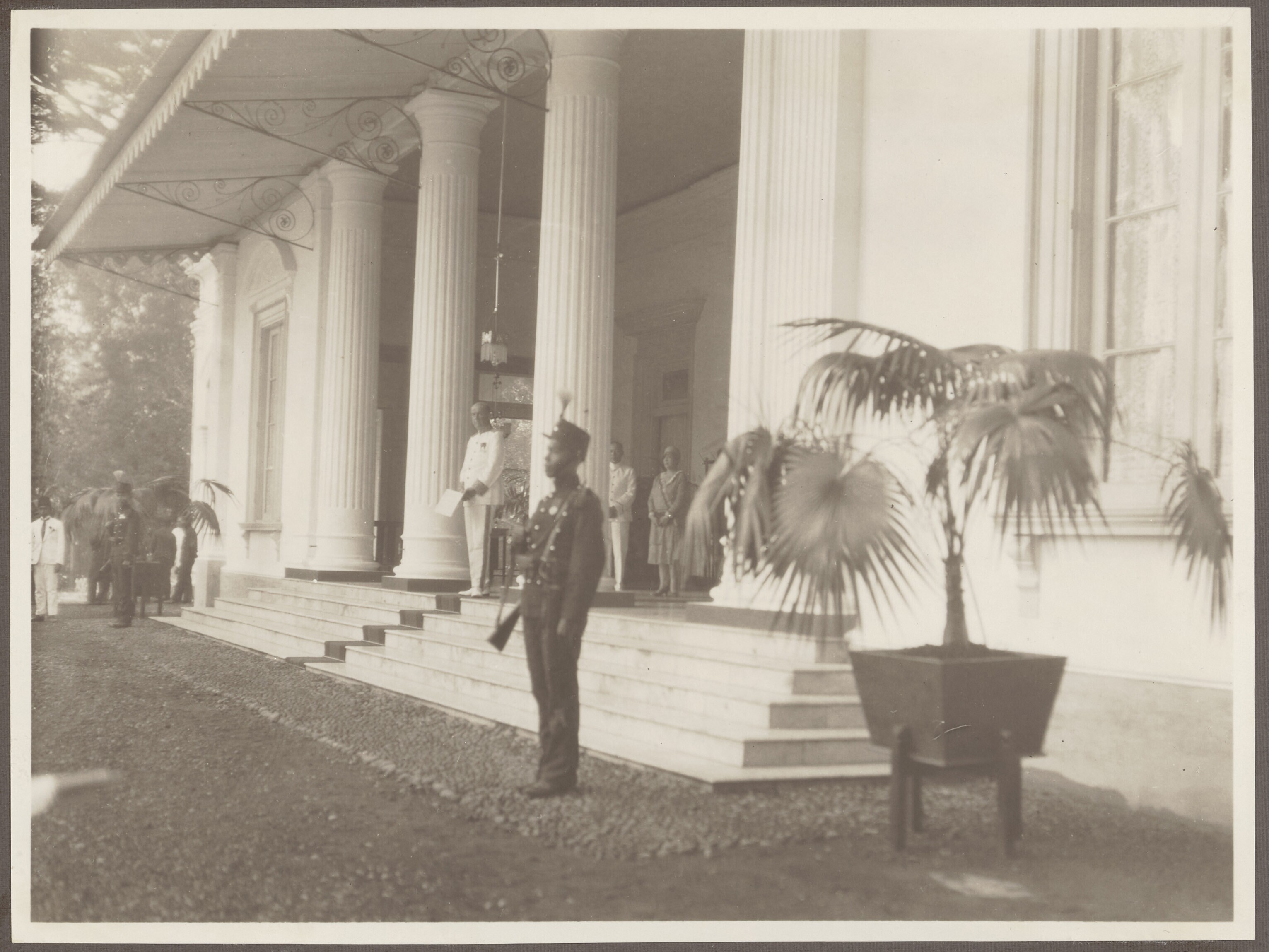 Gouverneur Generaal De Graeff luistert naar het zingen van schoolkinderen op Oost-Java