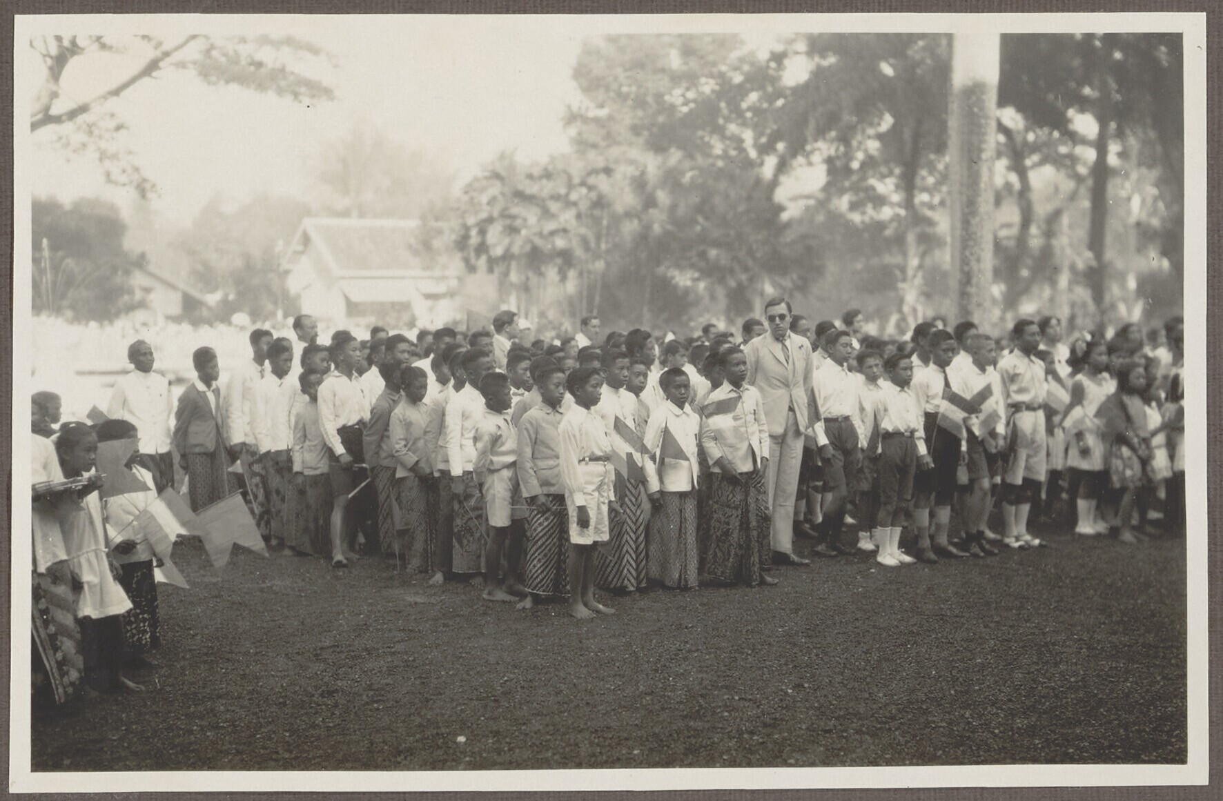 De aubade van de schoolkinderen ter gelegenheid van de komst van Gouverneur-Generaal De Graeff naar Sitoebondo op Oost-Java
