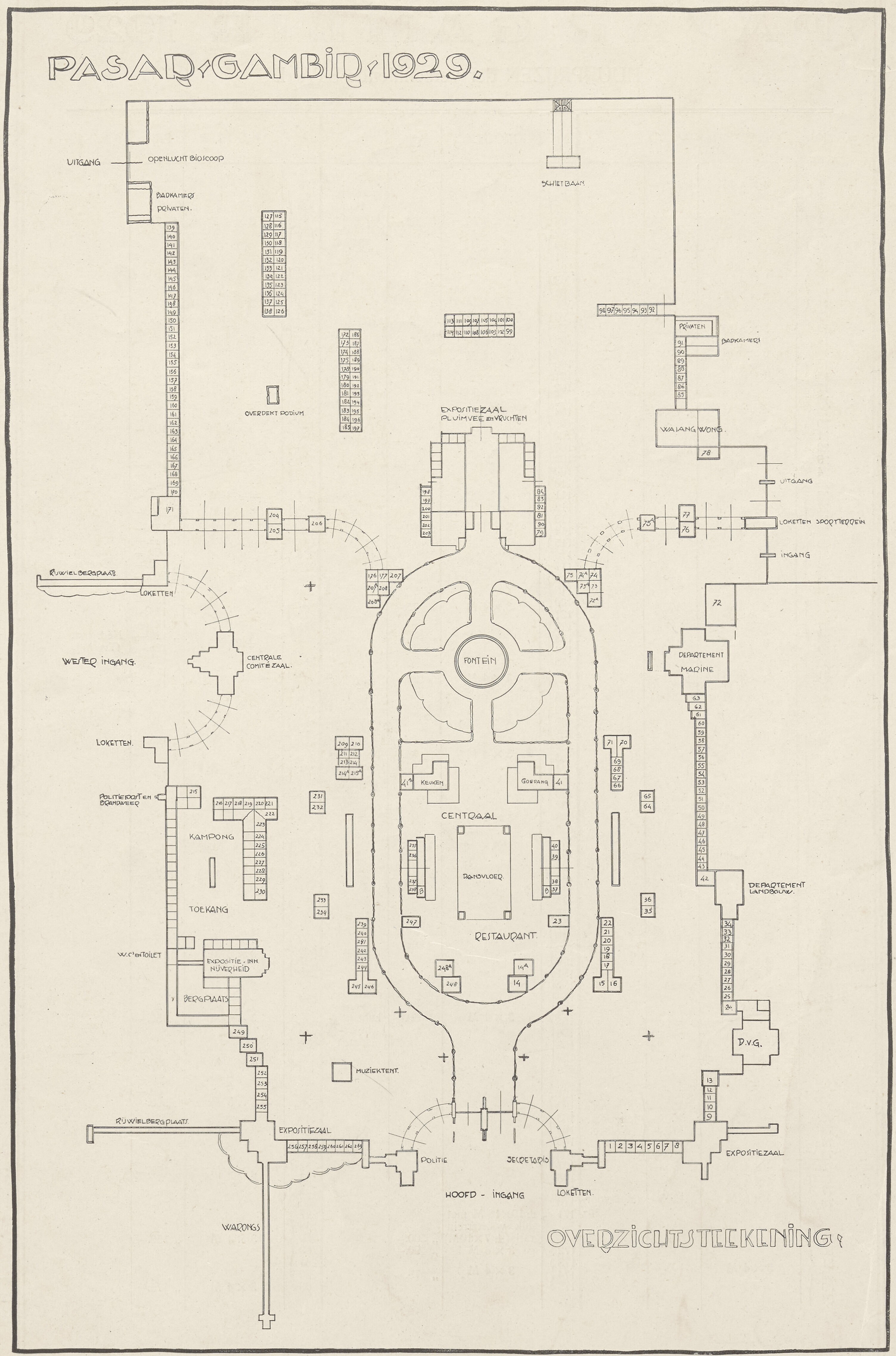 Map and fair stand rental prices of the Pasar Gambir at King's Square in Batavia