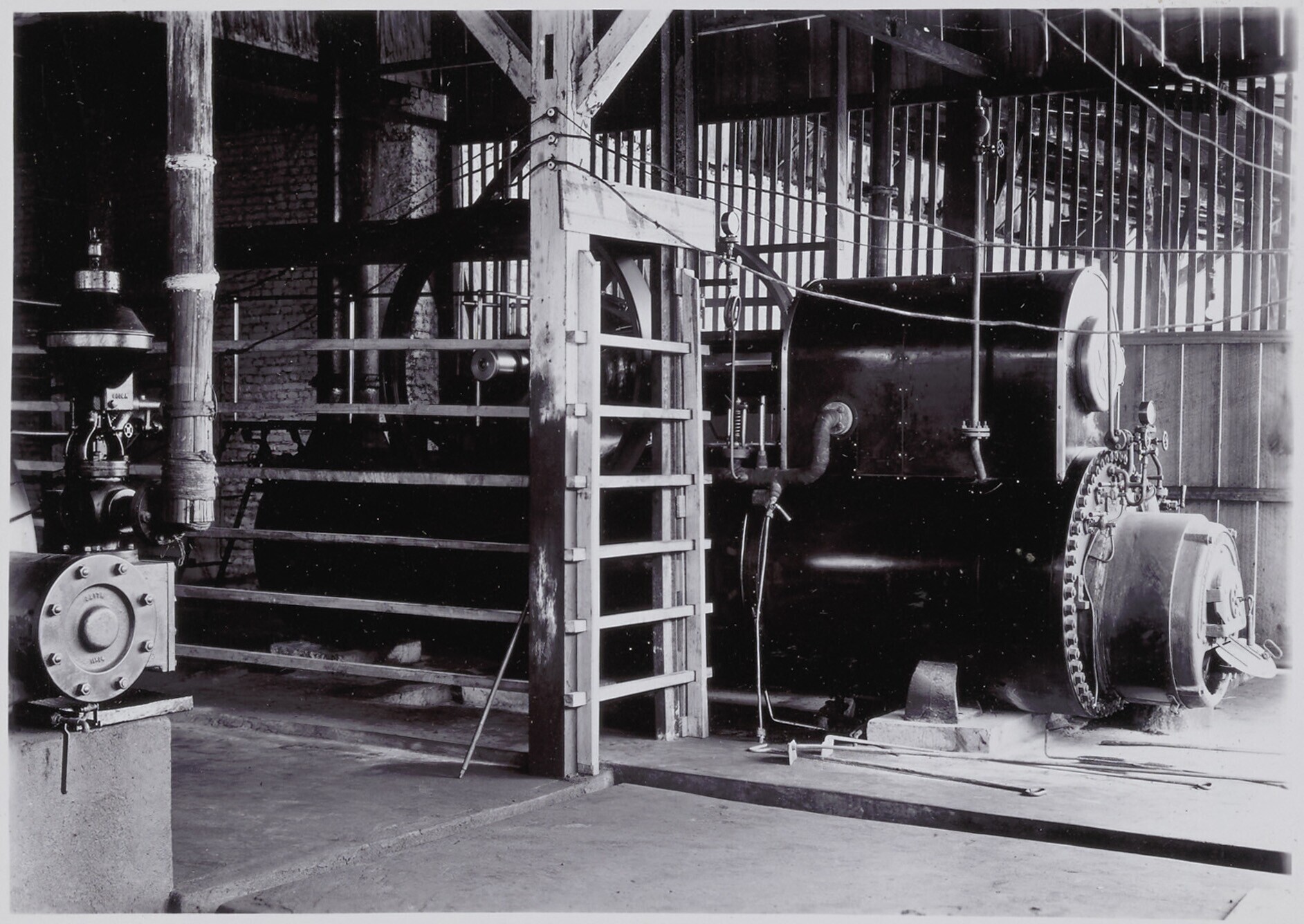 De nieuwe Henschel-stoommachine, links een gedeelte der oude machine.