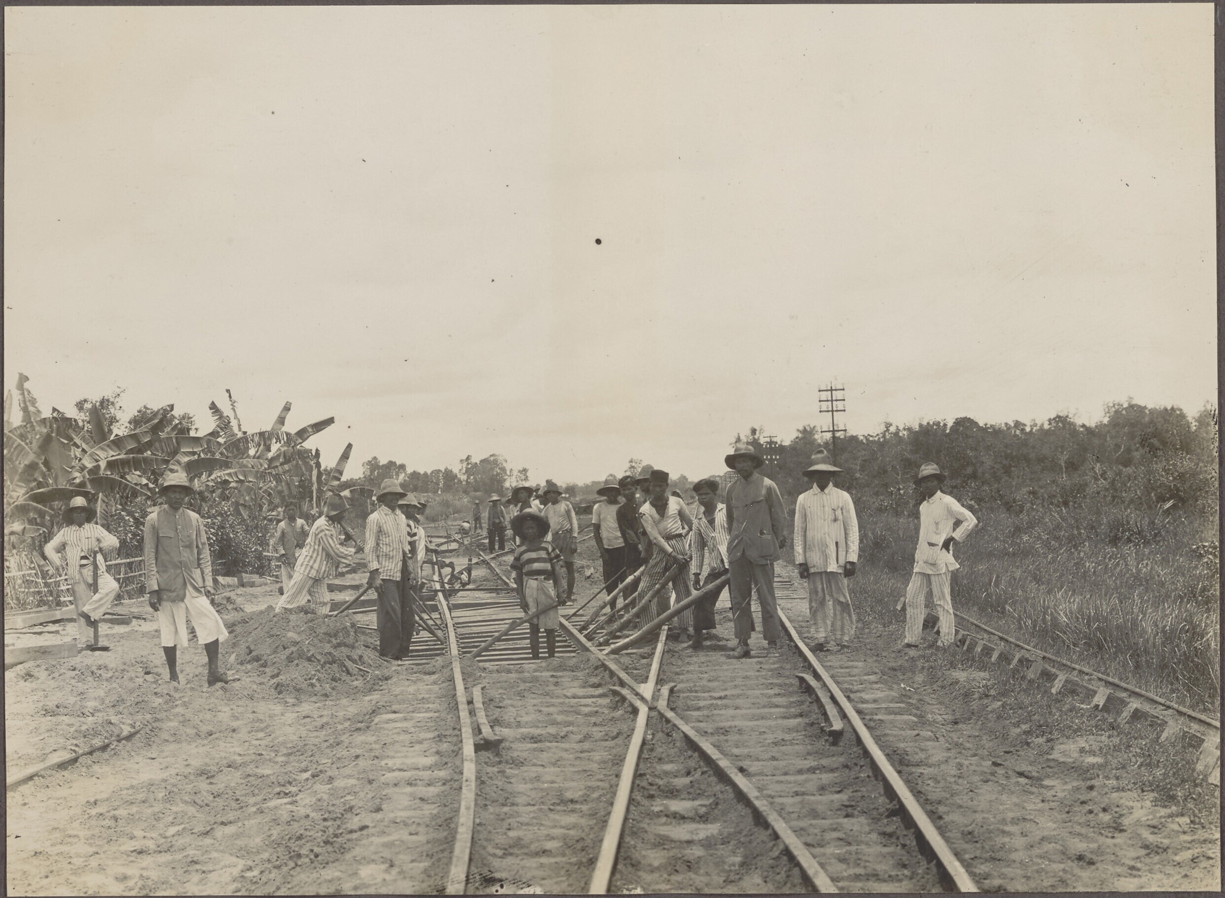 Railway emplacement of the NEI State Railways in South Sumatra (ZSS) during the construction of the Kertapati coal harbour near Palembang