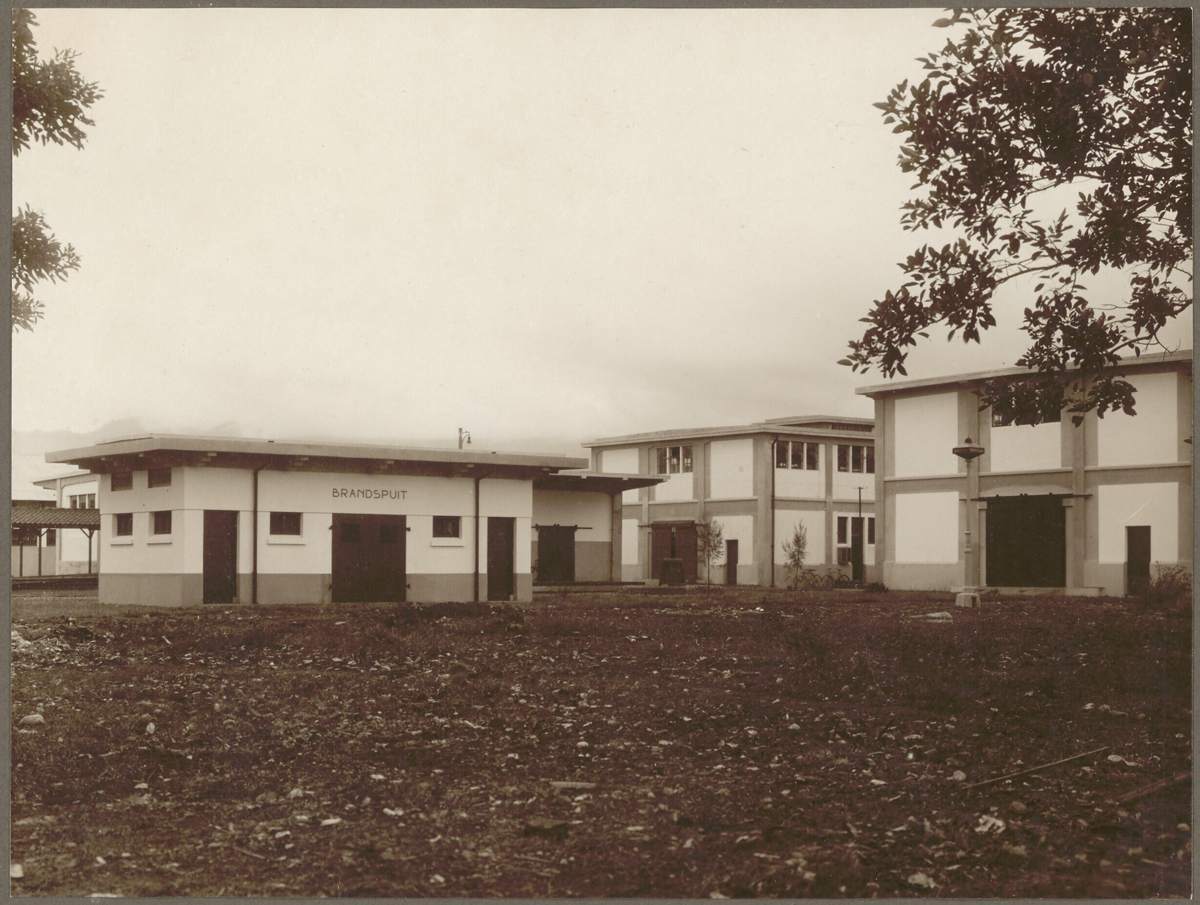 Betonloodsen en bergplaats voor de brandspuit op het magazijn van de Staatsspoorwegen, Tjikoedapateuh, Bandoeng