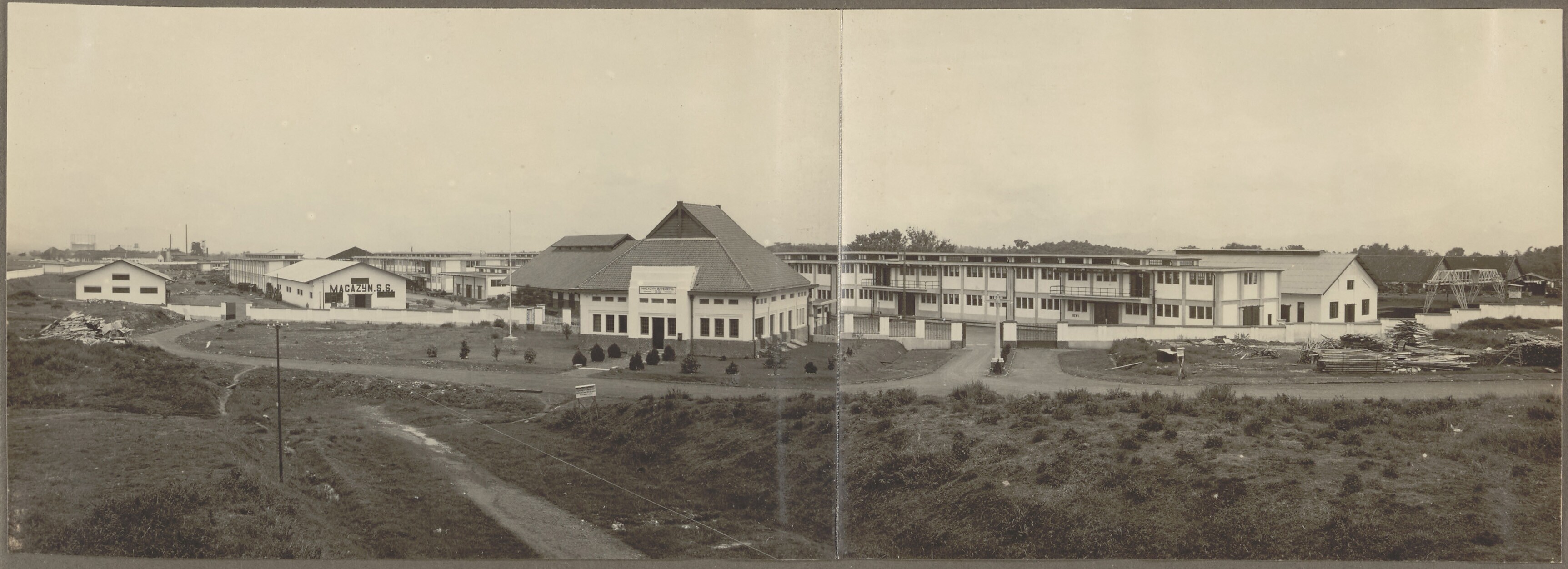 Magazijn van de Staatsspoorwegen, Tjikoedapateuh, Bandoeng, met de gasfabriek op de achtergrond