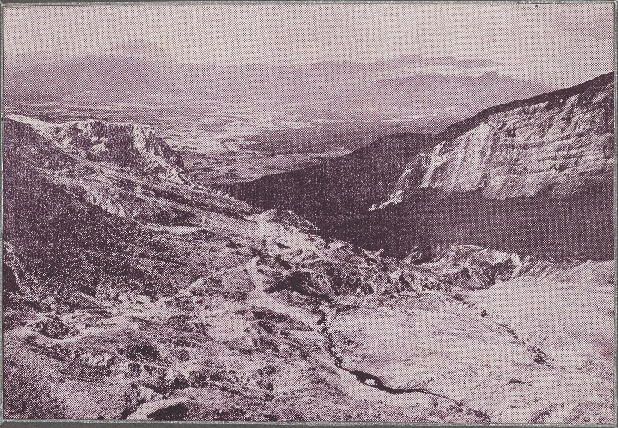 Foto uit album met foto's van een tocht naar de karter Papandayan door de KNIL