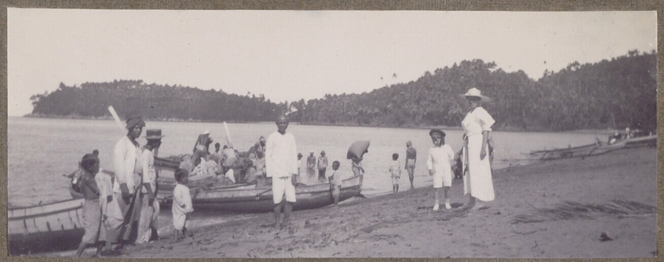 Stoomschip Pynacker Hordyk aan de kunst van Peta, Noord-Sulawesi