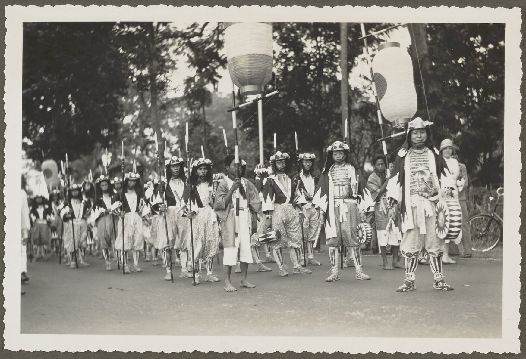 Mannen verkleed als Japanse Samoerai paraderen tijdens de Oranjefeesten in Malang