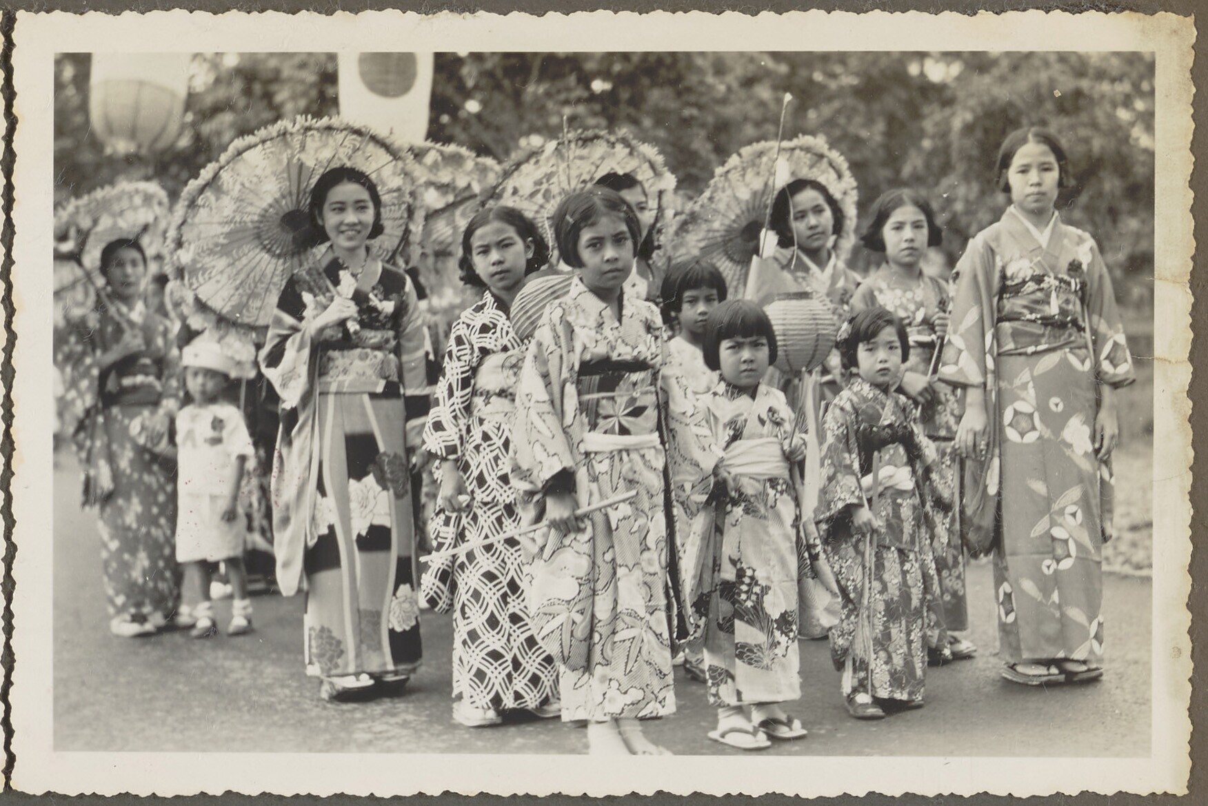Meisjes verkleed als geisha tijdens de Oranjefeesten in Malang
