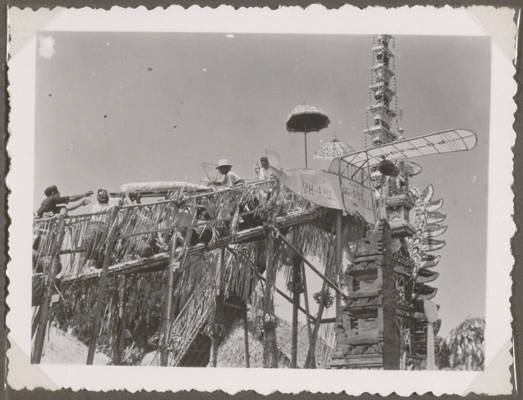 De lijken worden in de toren geplaatst tijdens een lijkverbranding op Bali