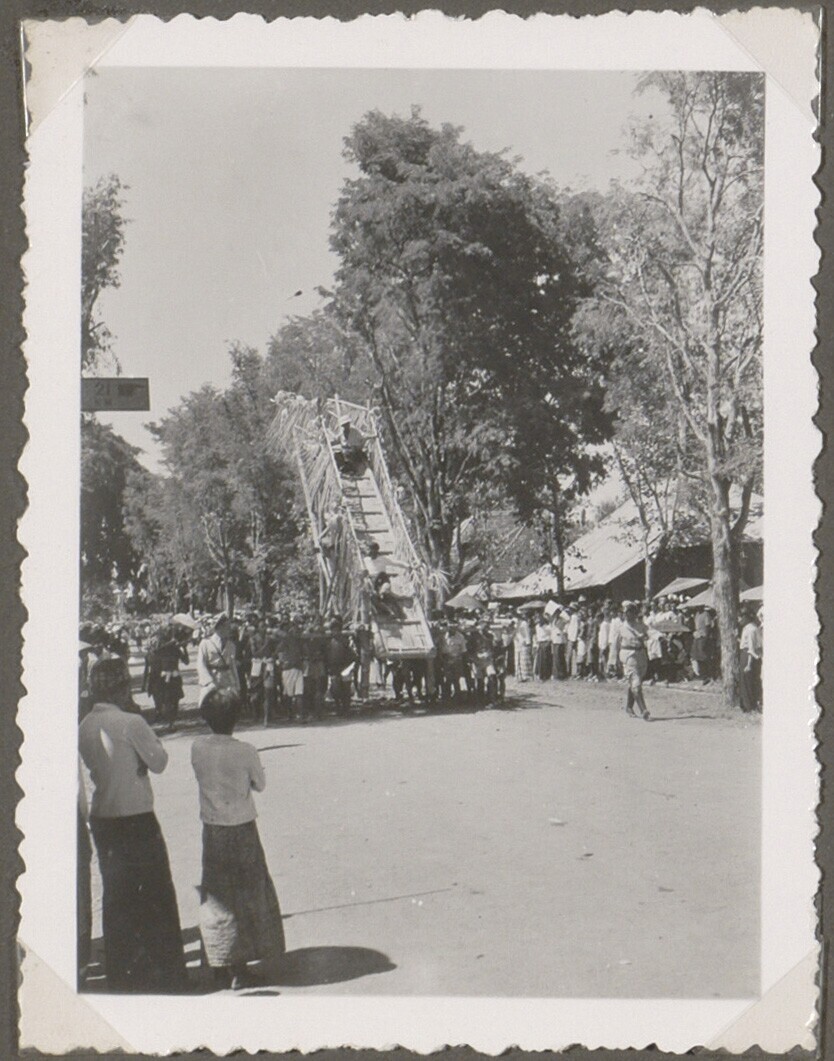 Transport van de trap tijdens een lijkverbranding op Bali