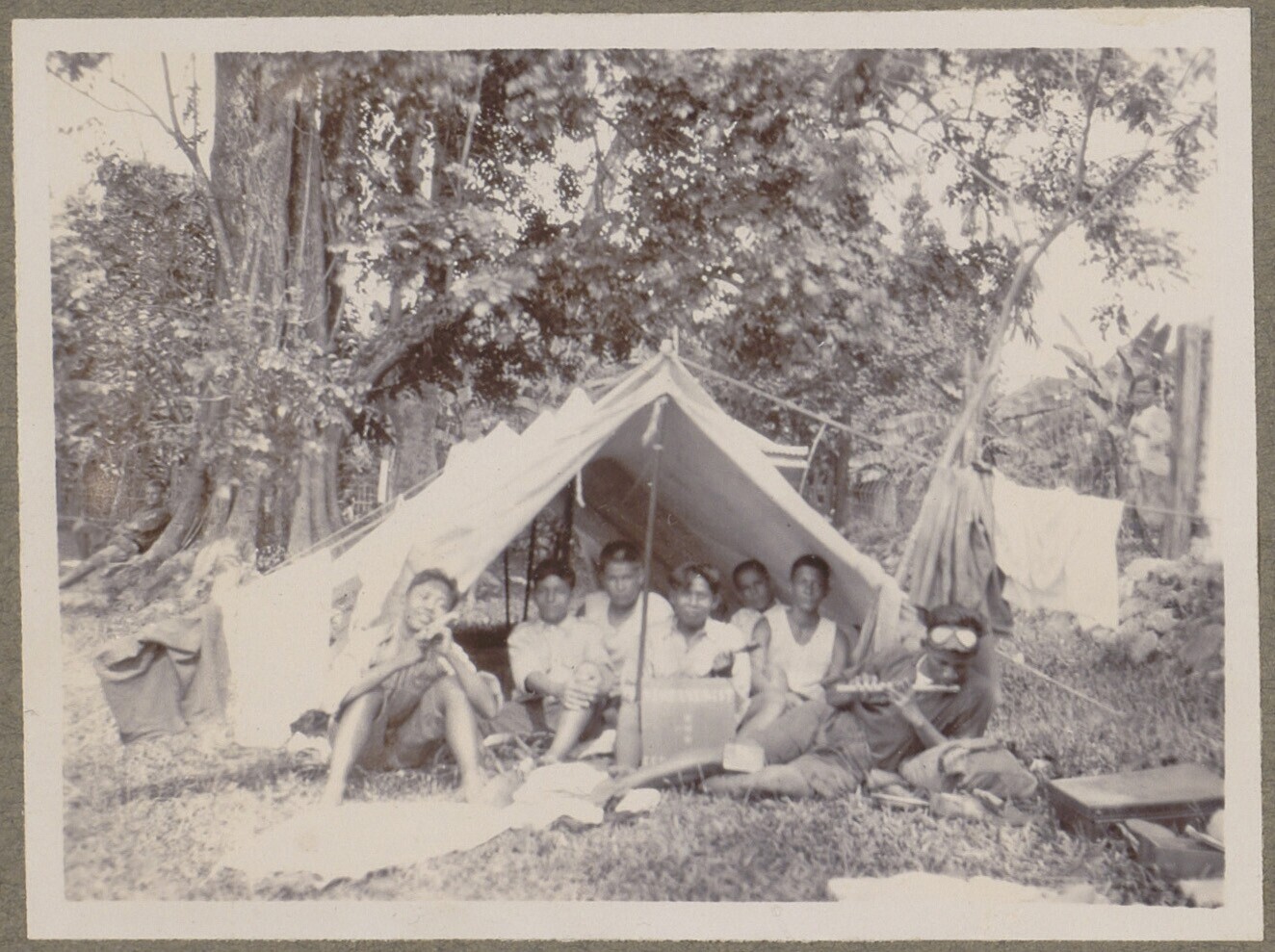 Jongens in een tent bij padvinderskamp in Tjiomas, West-Java
