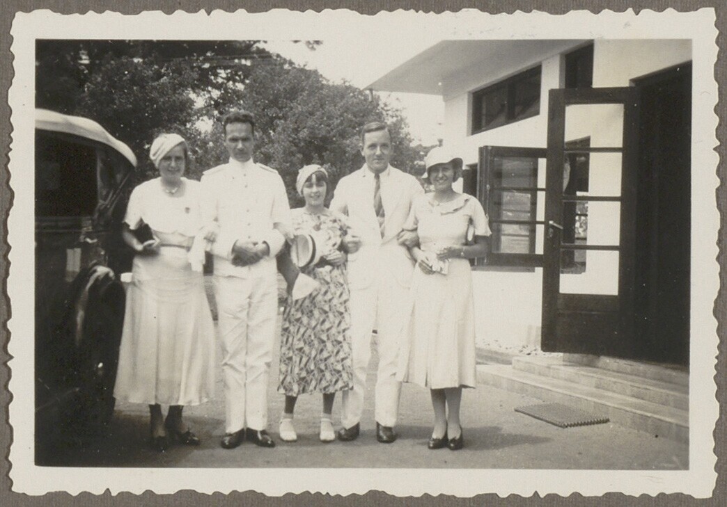 Gezusters Rookmaaker met vrienden voor de sociëteit in Teloek Betoeng