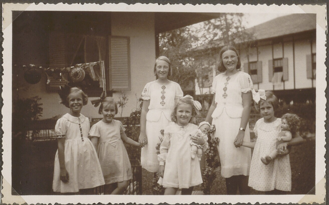 Portret van een groep kinderen met poppen
