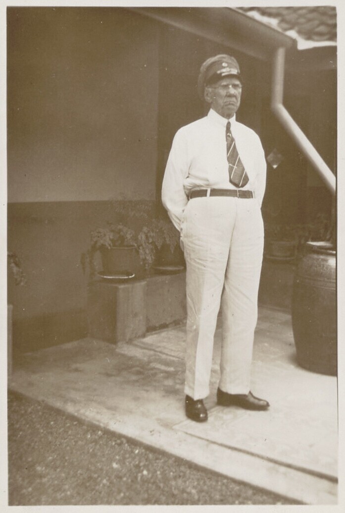 Indische man voor een huis met pet