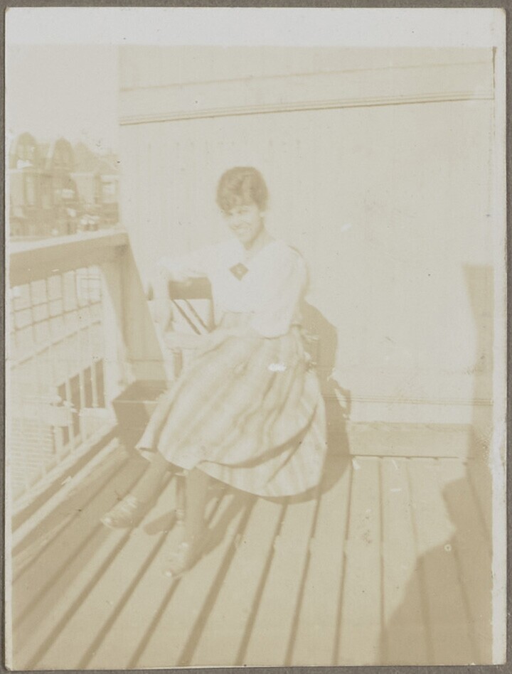 Vrouw geniet van zon op balkon