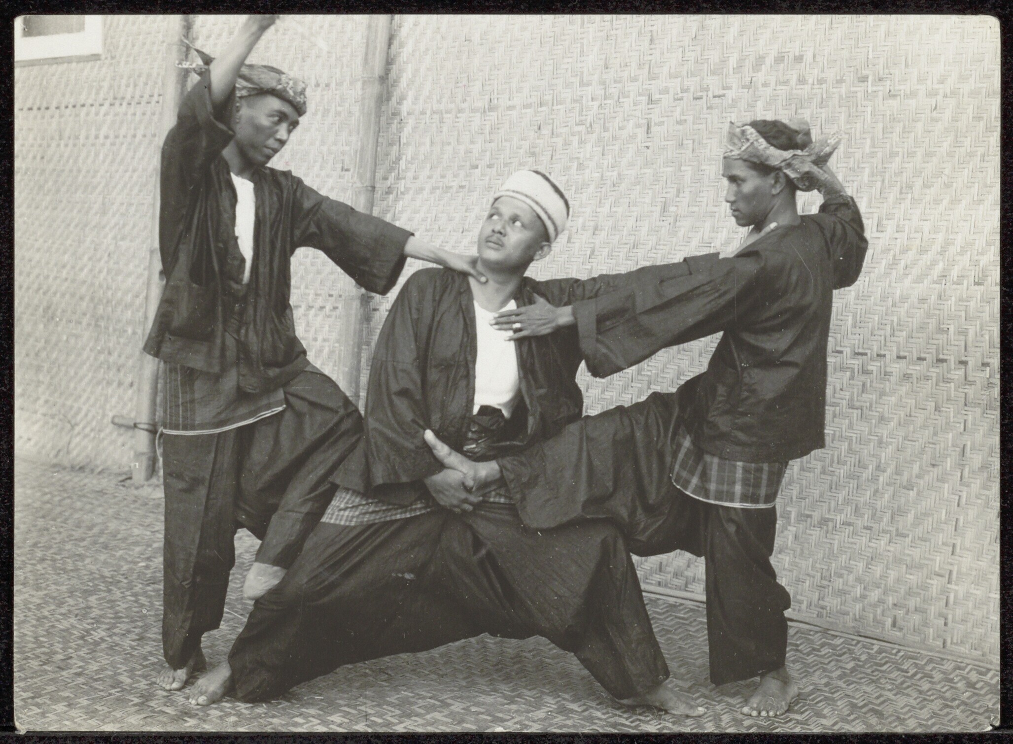 Voorstelling van Minangkabausche schermdansers