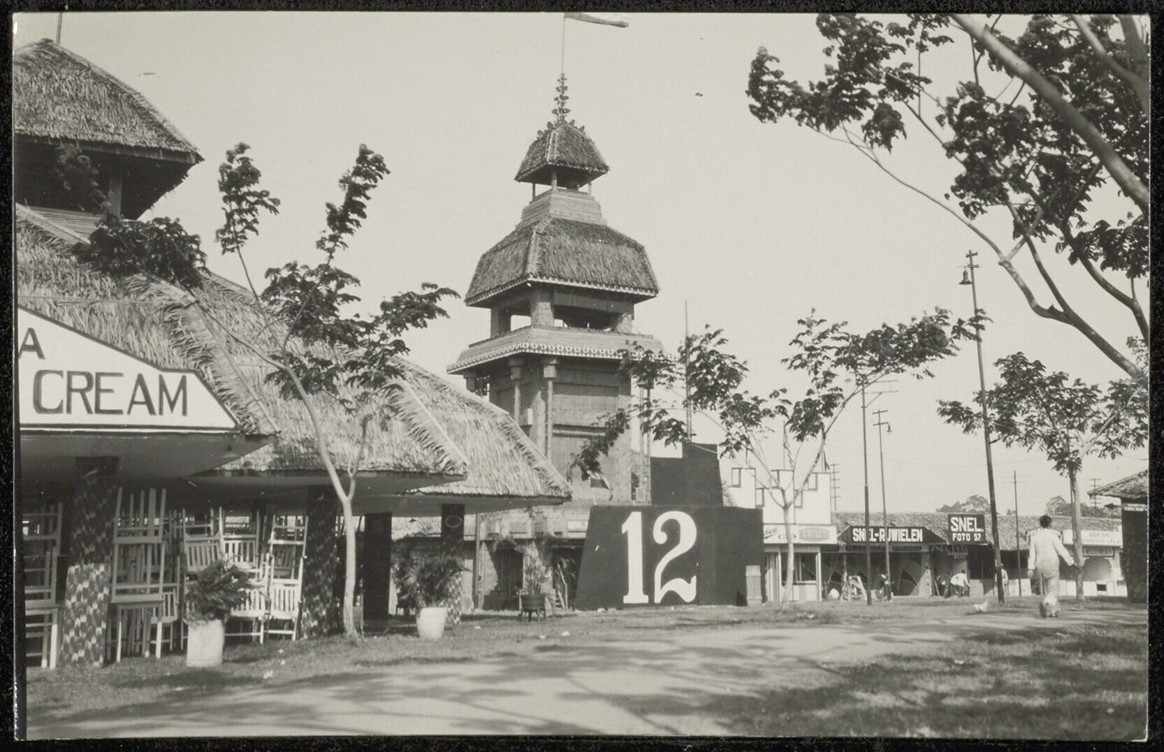 Ijssalon bij de Pasar Gambir jaarmarkt op het Koningsplein in Batavia