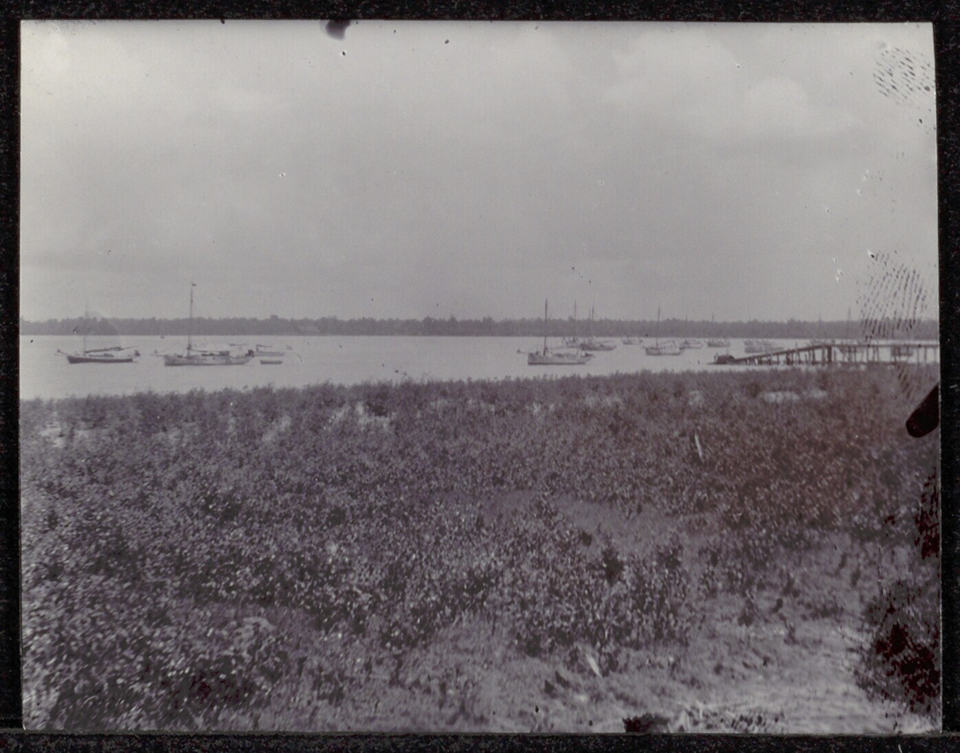 Zeilboten ter hoogte van een aanlegsteiger in de Merauke rivier